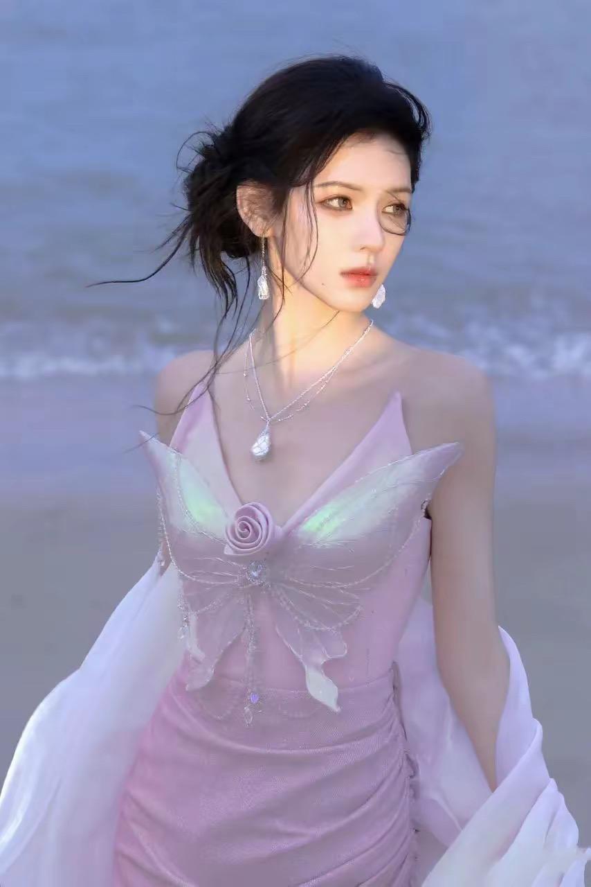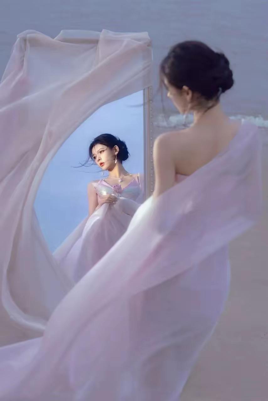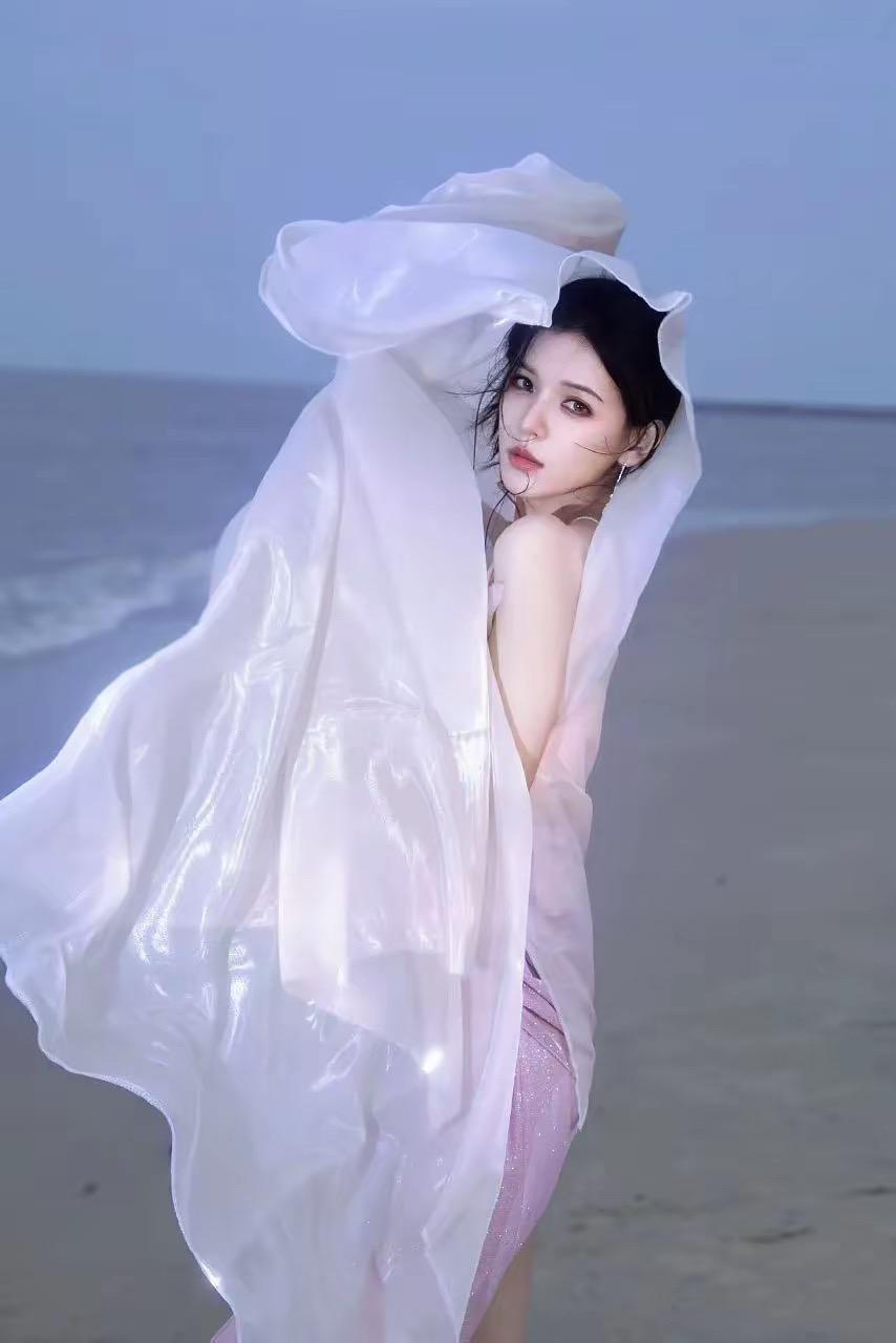 張予曦的身材,顏值、氣質都是非常上鏡的,她拍的照片每一幀都特別驚豔。這種海邊的白紗造型、宛若仙子一般,讓人迷醉。