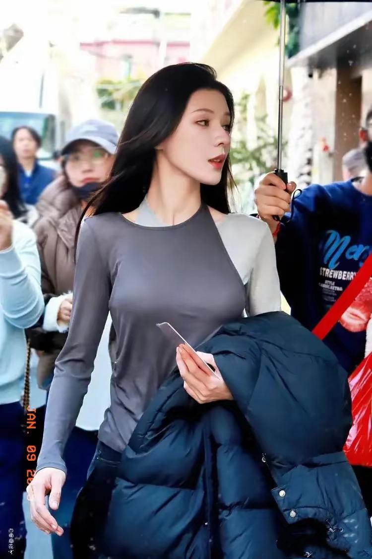 一頭披肩的長髮、眉眼清秀的張予曦,真的是太讓人心動了。在寒冷的冬天裏,爲了秀身材她還脫掉了羽絨服。