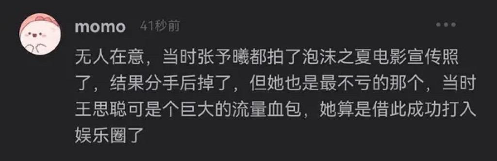 雖然後來張予曦和王思聰分手了,但是也沒多少人在意他們的分分合合。這時候的張予曦已經成功混入到娛樂圈了,有網友說當時張予曦已經拍了泡沫之夏的電影宣傳照,結果分手後掉了。