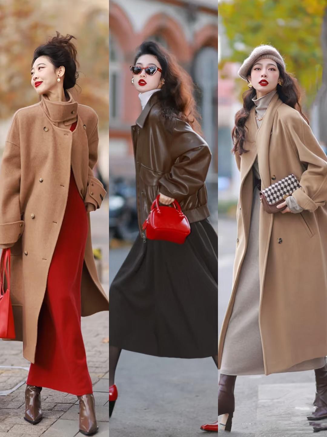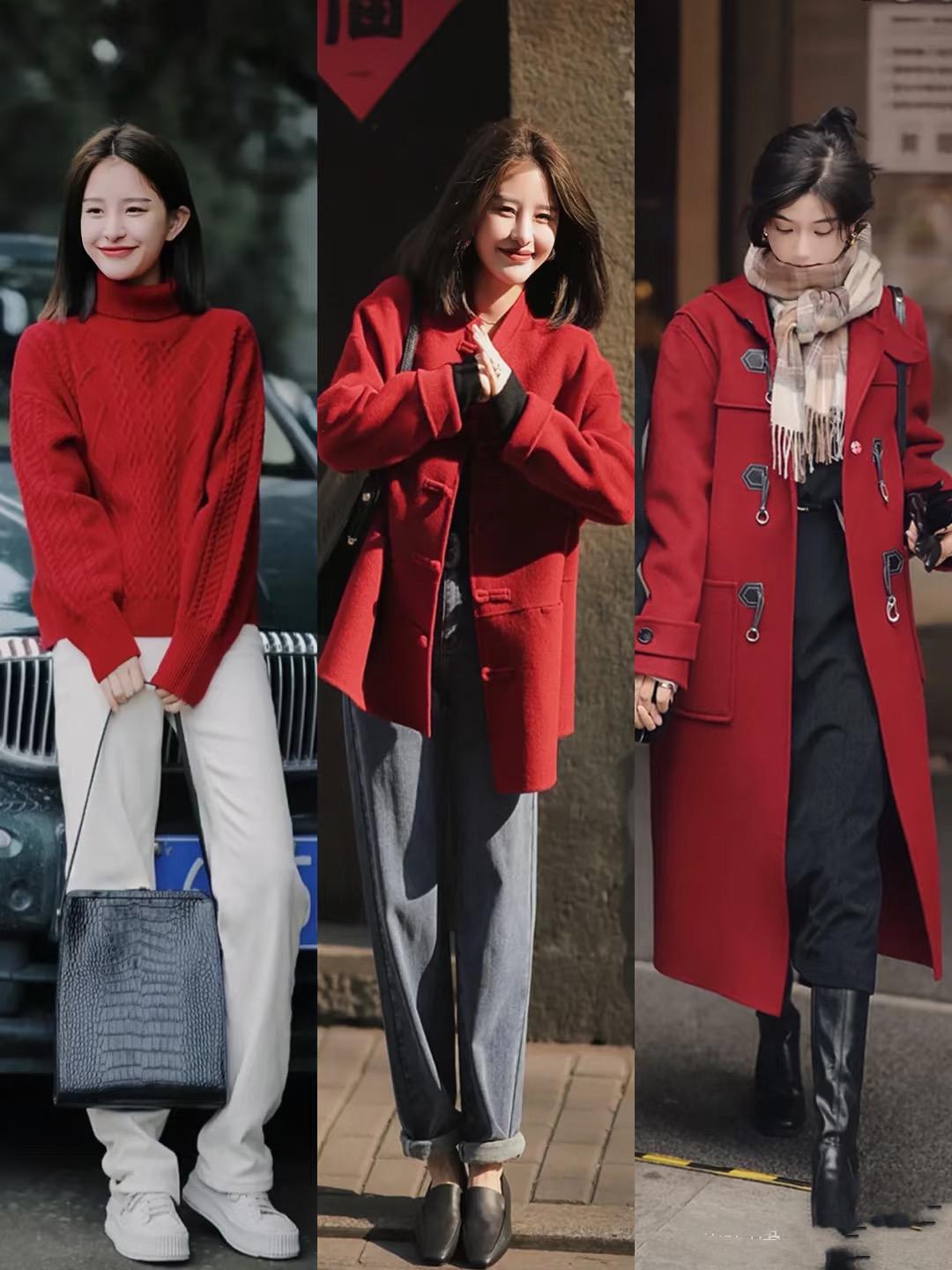 如果是比較年輕的女孩子,則可以嘗試紅色的外套。紅色的毛呢外套,能讓冬季穿搭更喜慶,作爲新年穿搭也不錯。