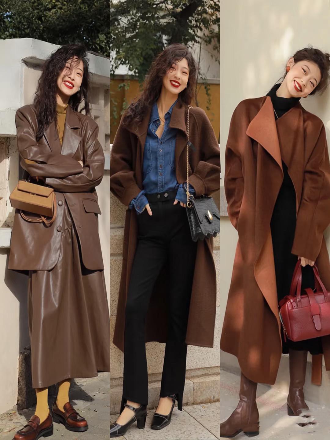 很溫暖、又比較顯白的棕色系,誰能不喜歡呢?像這種溫暖的棕色,讓我們的穿搭更有辨識度,打破冬季陰霾、時尚又保暖。