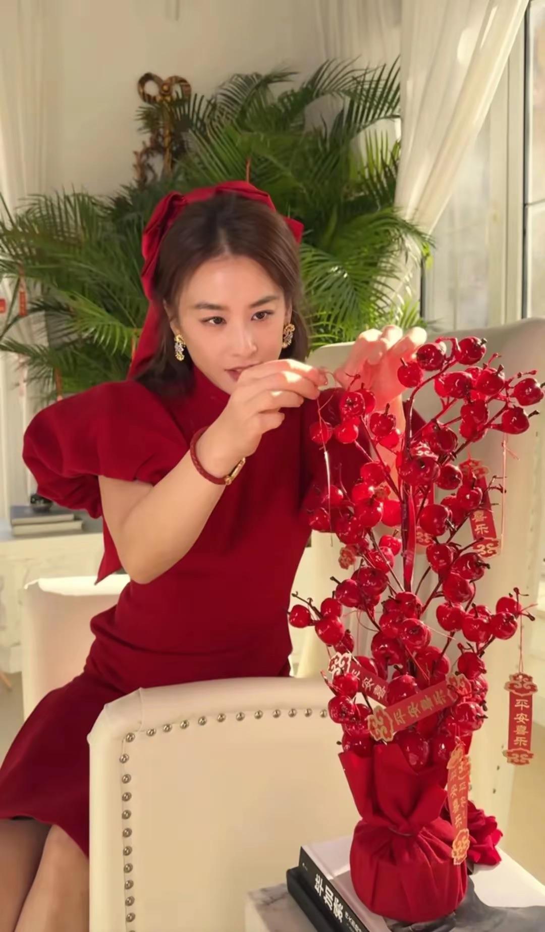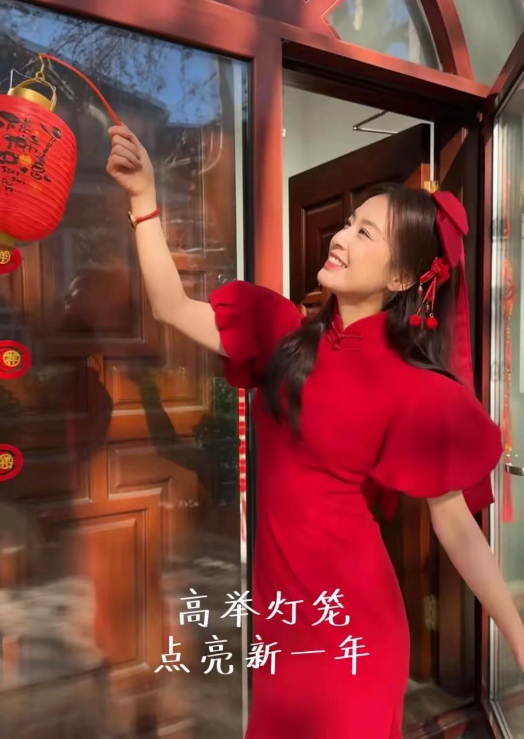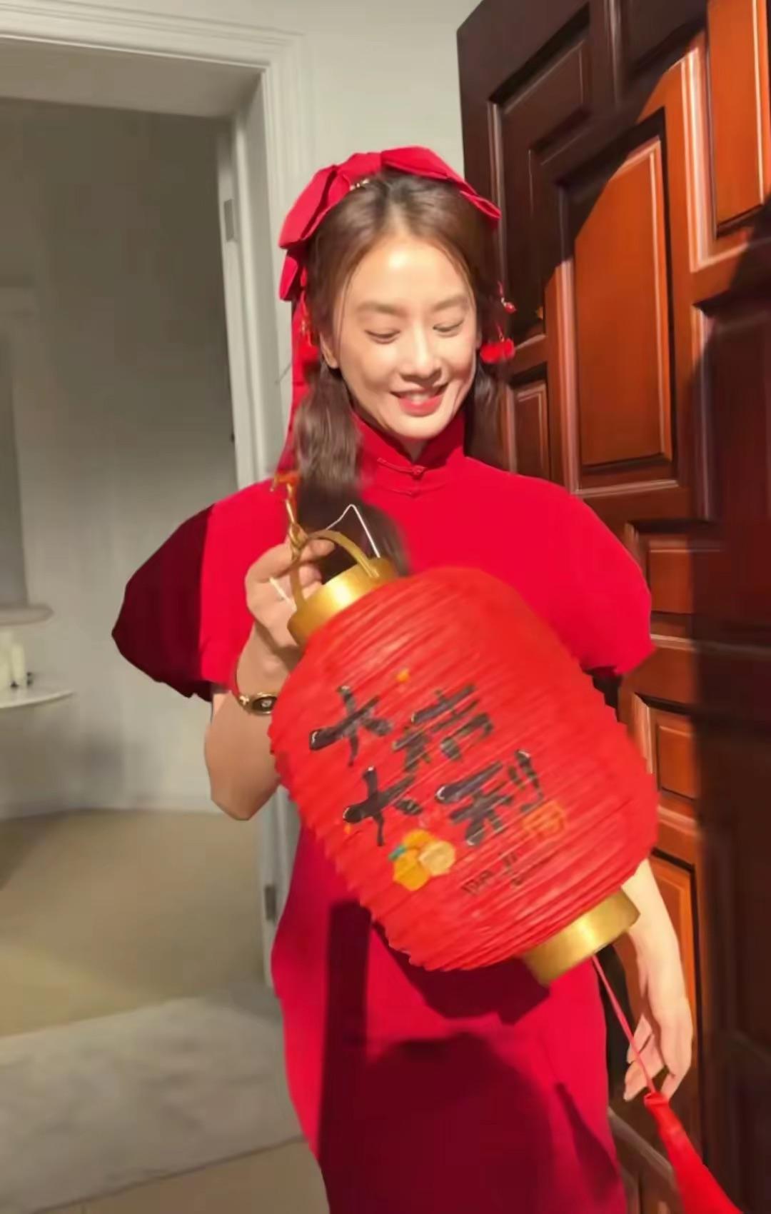 還有吉祥如意、夫妻到我家的字樣。黃聖依穿紅色旗袍、拍了這樣一組很有節日氛圍的照片,也把楊子的豪宅帶入進去,一看就是夫妻感情穩定,生活幸福。