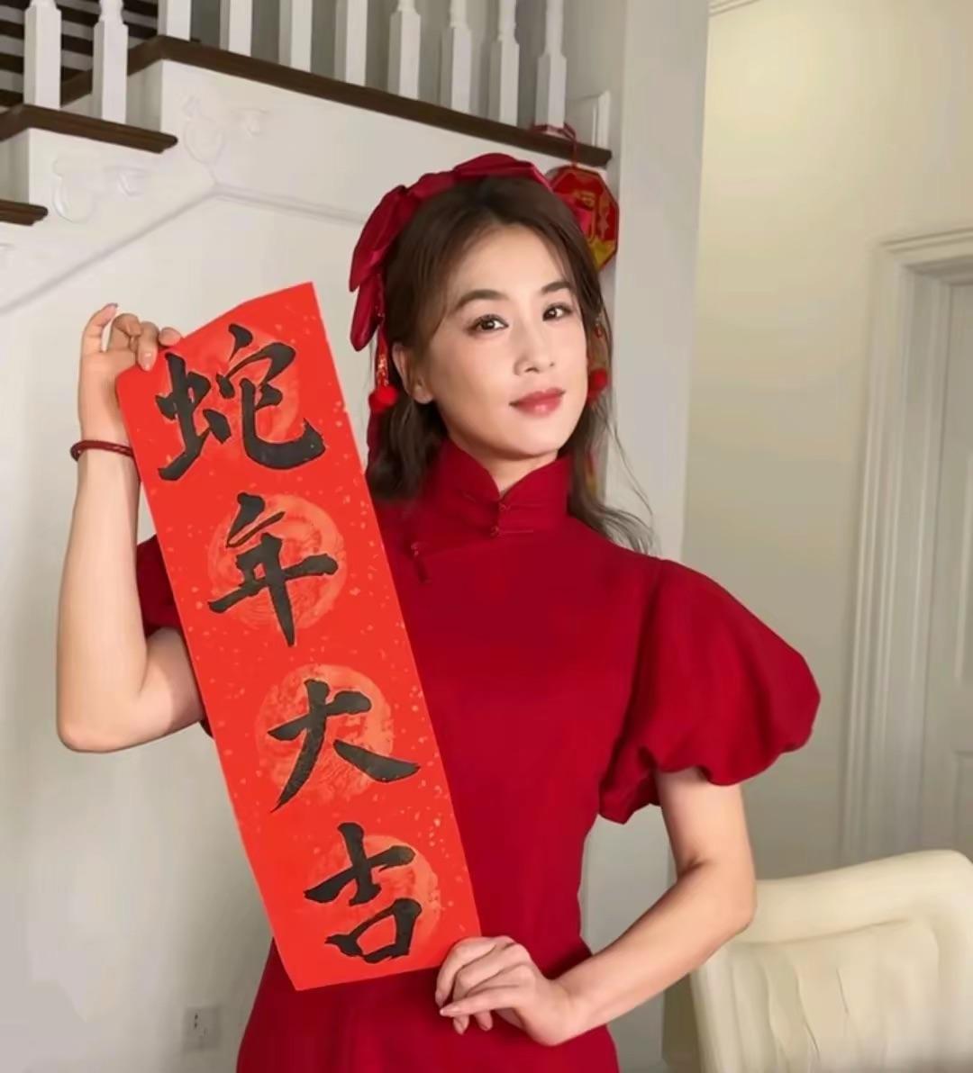 黃聖依回到楊子豪宅,寫對聯貼窗花好喜慶,41歲穿旗袍身材似少女
