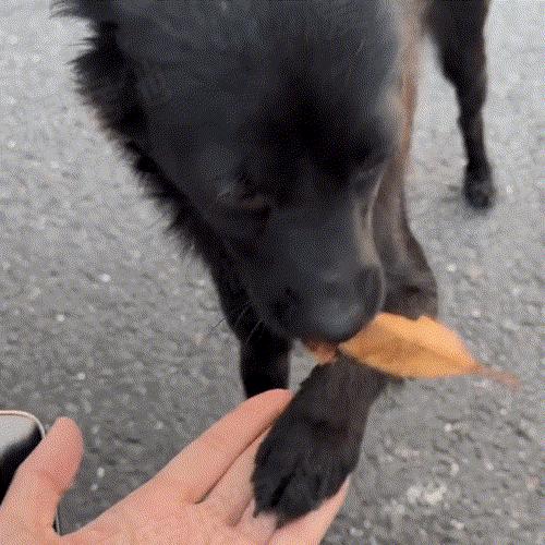 那隻送葉子給小姐姐的流浪狗小黑,連續送3個月後,終於苦盡甘來