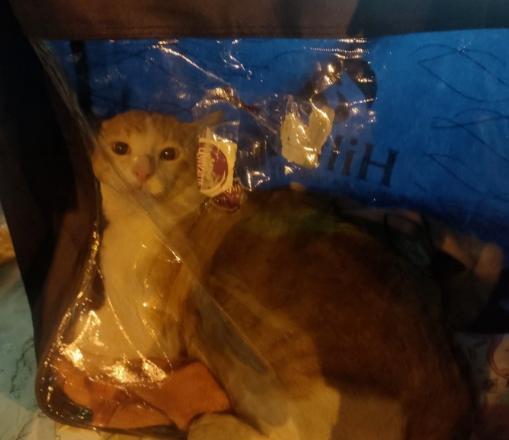 只見小女孩的袋子裏除了有一隻貓咪,還有一包紙巾、一個魔方、一條貓咪用的毯子、一些貓糧……
