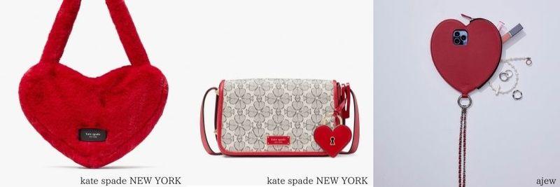 “kate spade NEW YORK”的毛絨托特包和斜挎包,鮮豔的紅色心形設計定會成爲情人節搭配的亮點。