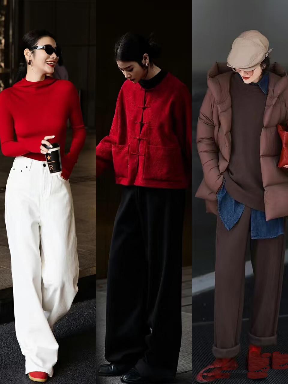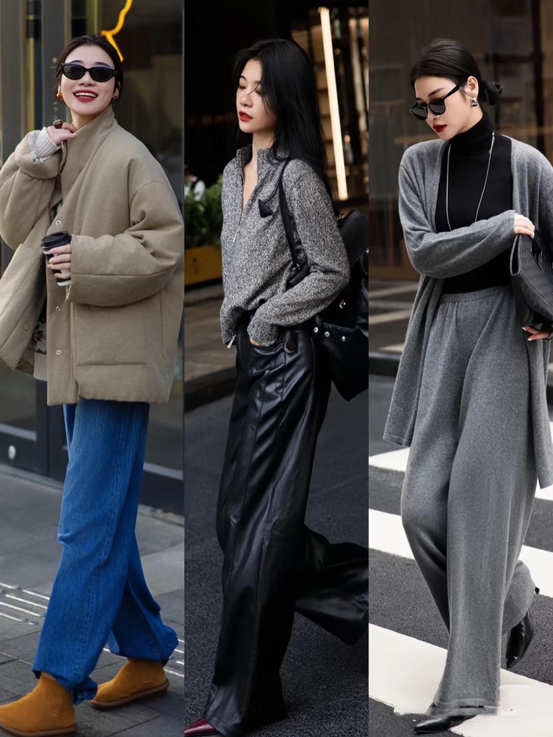 簡單的針織衫、或者帶有少許設計感的國風外套、寬鬆的羽絨服,都可以用來打造時尚之美。年終聚會的時候,配一條高腰的闊腿褲就很颯。