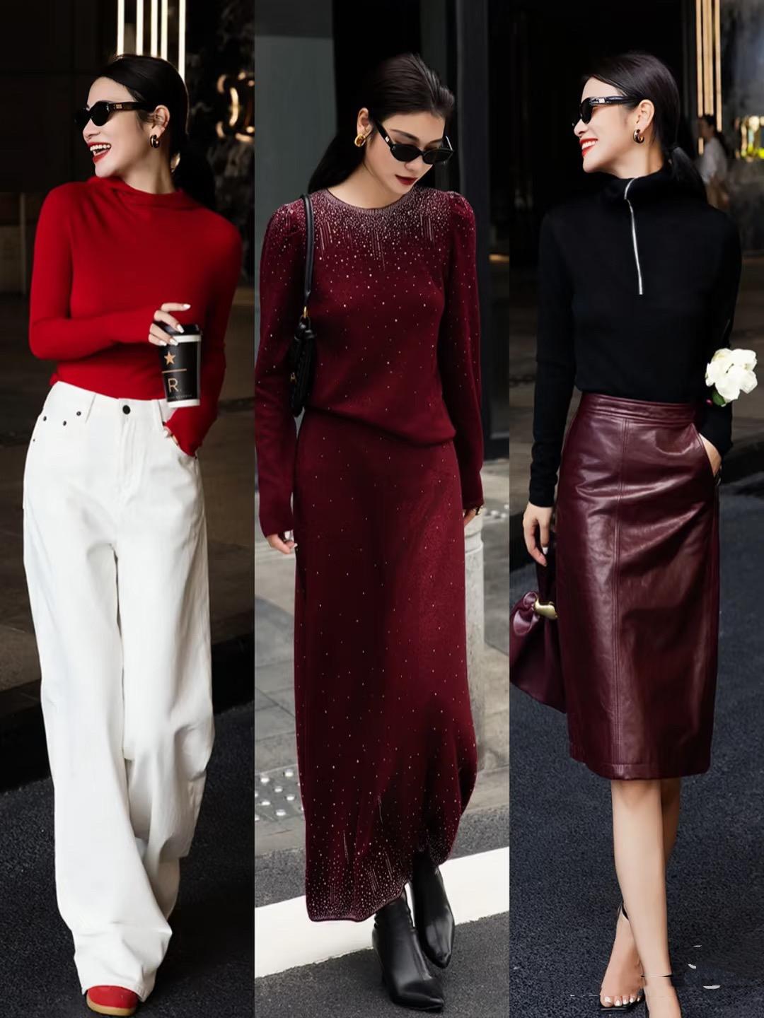 修身的打底衫、高腰的闊腿褲,隨便一穿就洋氣拉風。酒紅色的針織套裙、配一雙方根的短靴,簡簡單單的就很顯氣質。