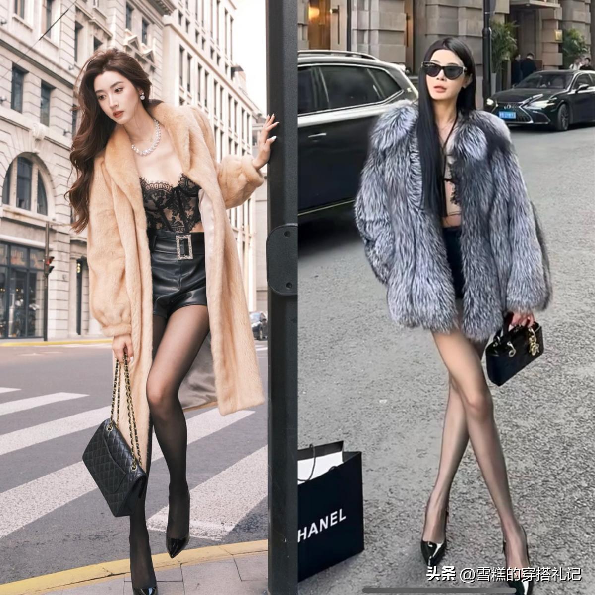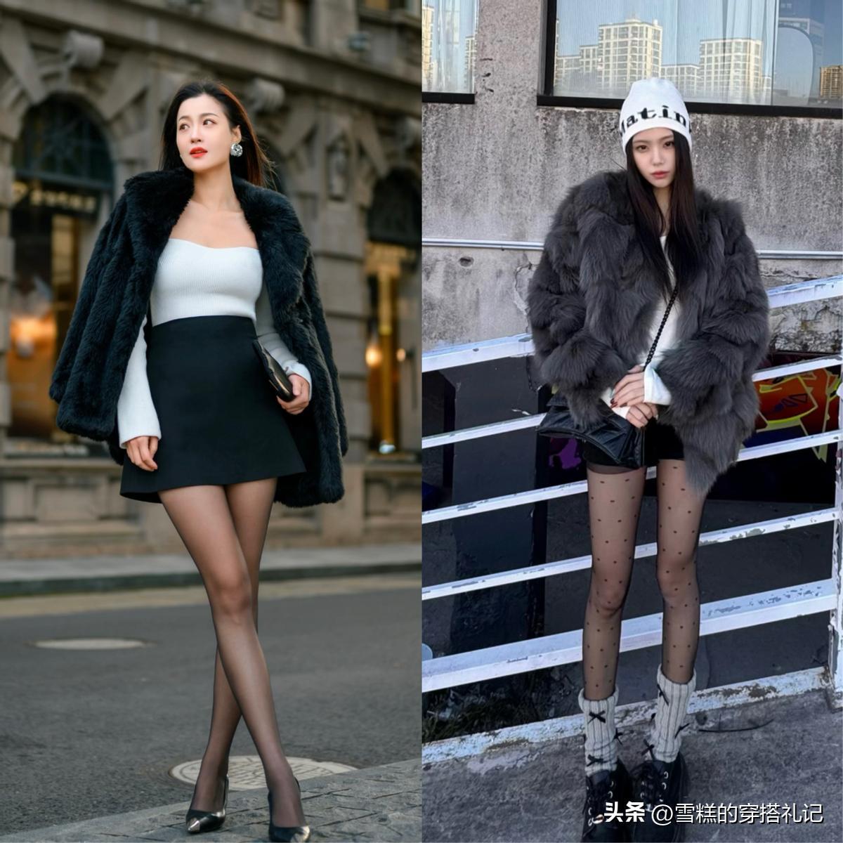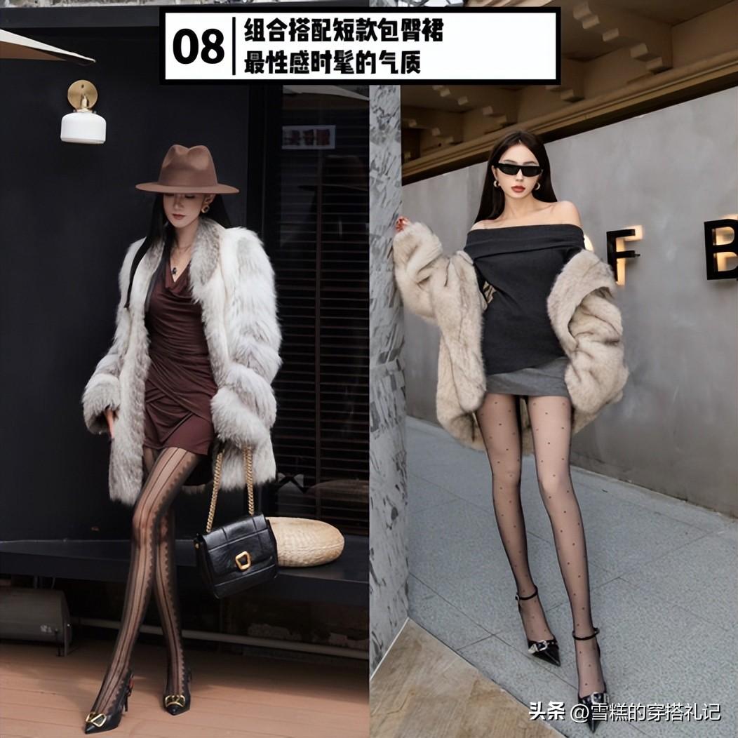 三、皮草+黑絲的搭配,多借鑑這2種穿法