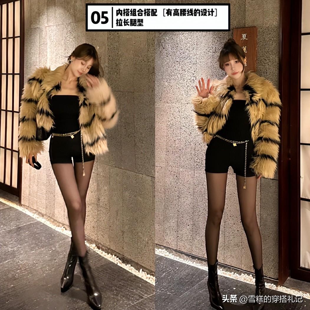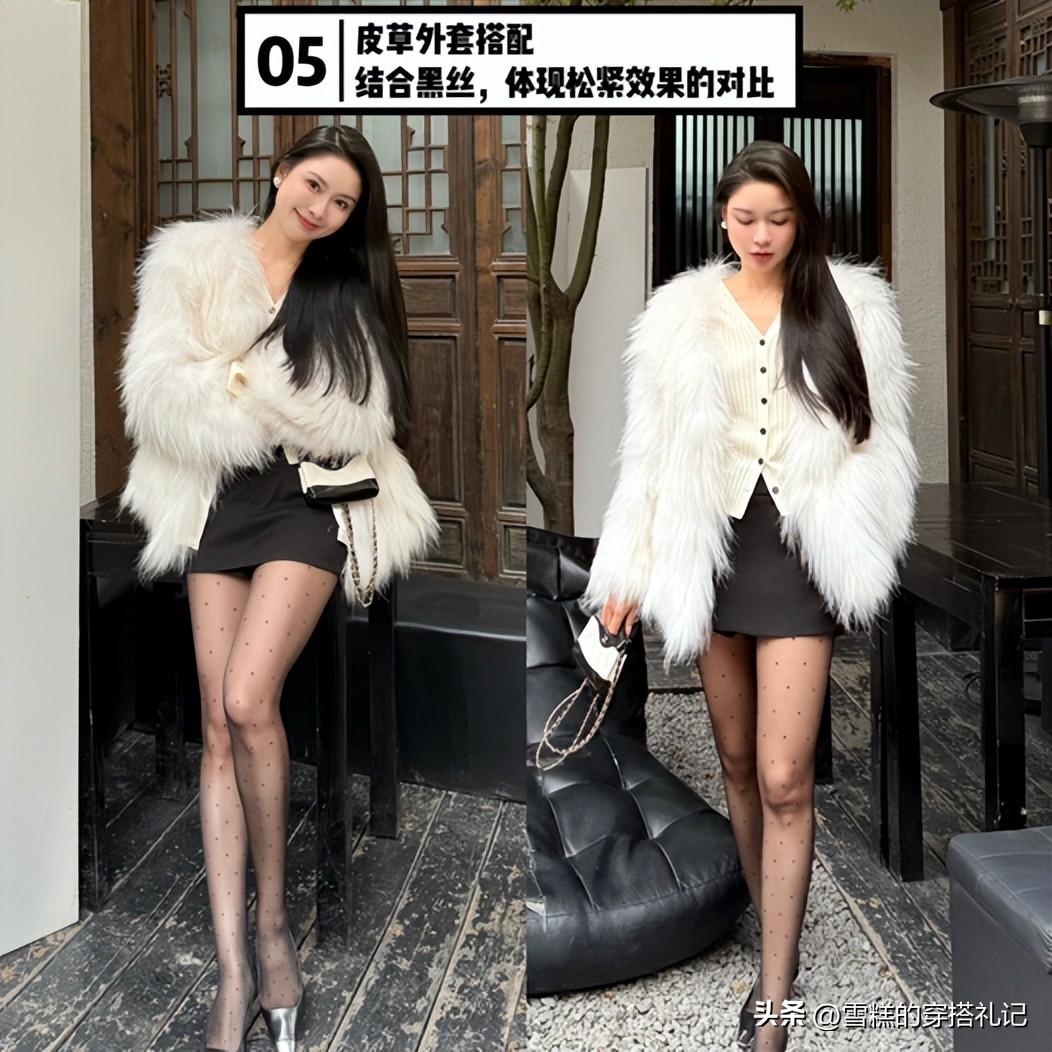 二、Get同款穿搭---皮草和黑絲這樣組合吧!