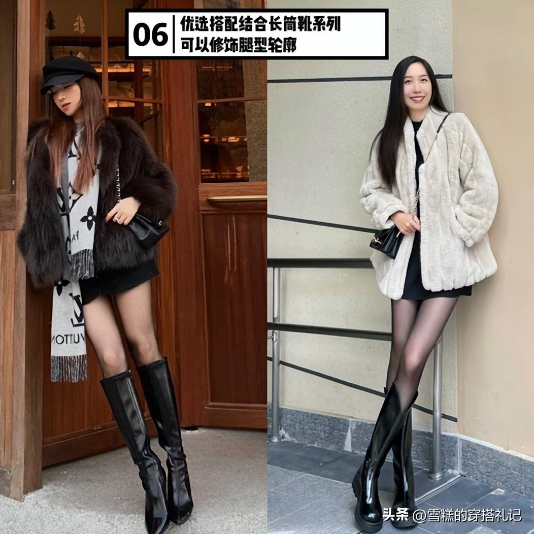 像緊身的黑絲或者是光腿神器以及無痕褲這樣的緊身系列的下裝,真的非常推薦大家在冬季當中的時候,能夠與長款的靴子進行組合搭配,這對於腿型狀態不好看或者小腿的部位有小贅肉的女性來說也能夠放心穿。