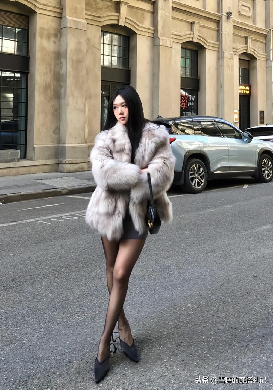 Ⅰ 皮草搭配短款包臀裙,結合黑絲---魅力女人