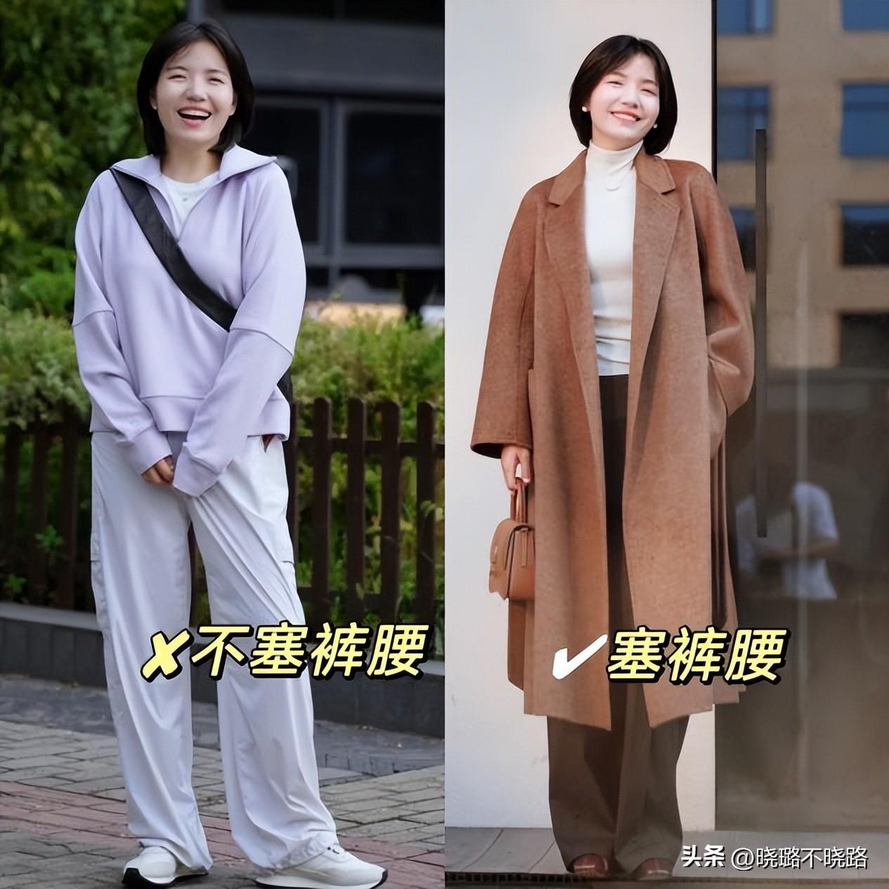 個子不高的女人世界上看起來會更加顯胖一些,所以大家可以將長款的外套敞開穿,稍微長一些的內搭塞進褲腰裏,使得腰線更加清晰明瞭,自然的拉伸比例,讓人看起來更加高挑纖細。注意,上身穿的外套一定要寬鬆有型,不可柔軟邋遢!