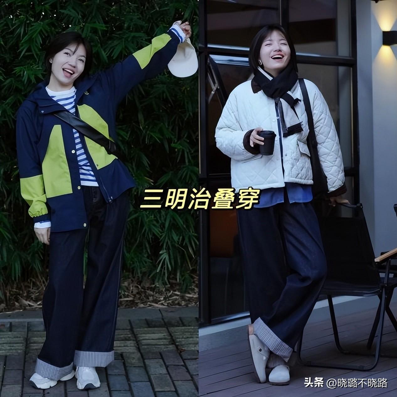 130斤的阿姨們可以多用疊穿的技巧來達到顯瘦的效果,單穿一件寬鬆的羽絨外套,難免有些空曠與肥胖。但是疊穿襯衫與打底衫之後,上半身的層次更加豐富,拉長了縱向線條之後,視覺上看起來自然更加纖細。但這個時候應該多關注領口的形狀以及衣袖的長短,在頸部和手腕位置增加層次才更顯纖細。
