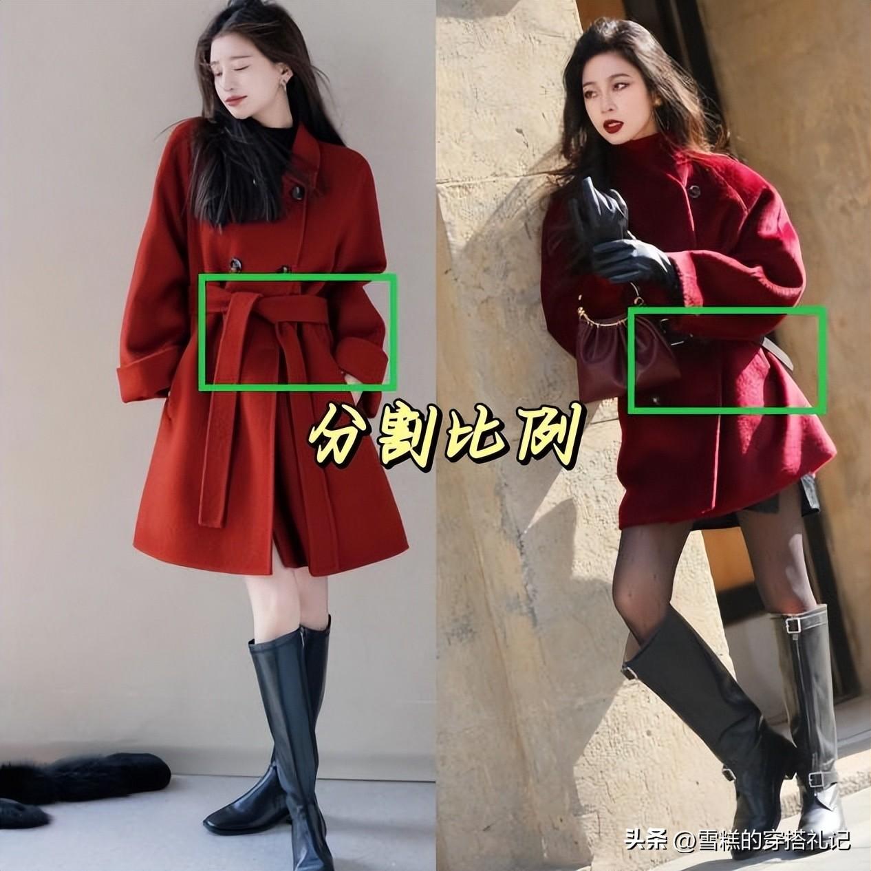 在穿安琪拉紅大衣的時候,一定要多關注一下大衣的長短,容易影響整個造型的塑造。如果想要突出大長腿,儘量選擇長度超過膝蓋的大衣,配上短款內搭,能夠更好地拉伸比例,顯得腿部線條更加修長筆直。關鍵過膝的長度也更好駕馭,高個子和矮個子都能夠輕鬆身,不用擔心會壓低個子。