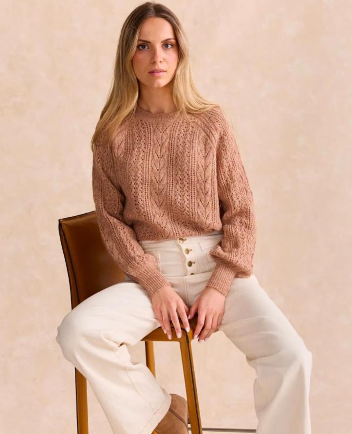 很不失復古感的鏤空毛衣,搭配高腰小白褲,直筒的版型,恰到好處修飾了整個腿部,還能把雙腿比例給拉長,簡約中又透着溫柔與知性,非常適合普通女性們學習與借鑑。▼