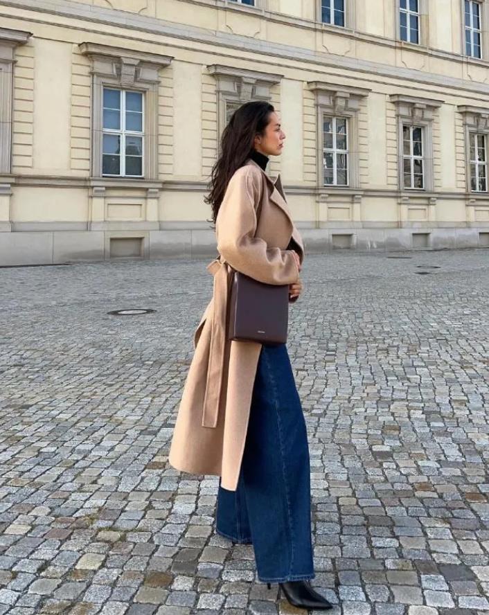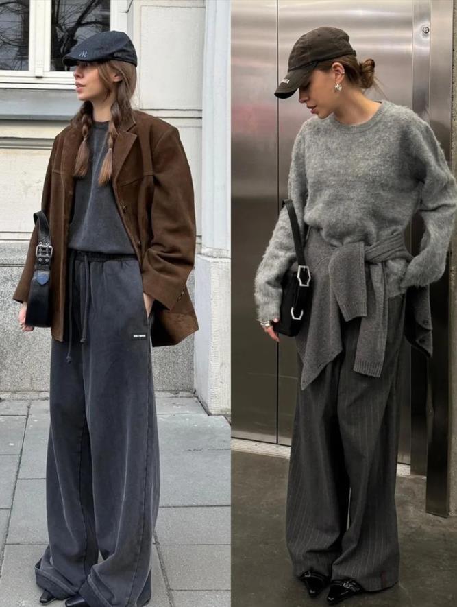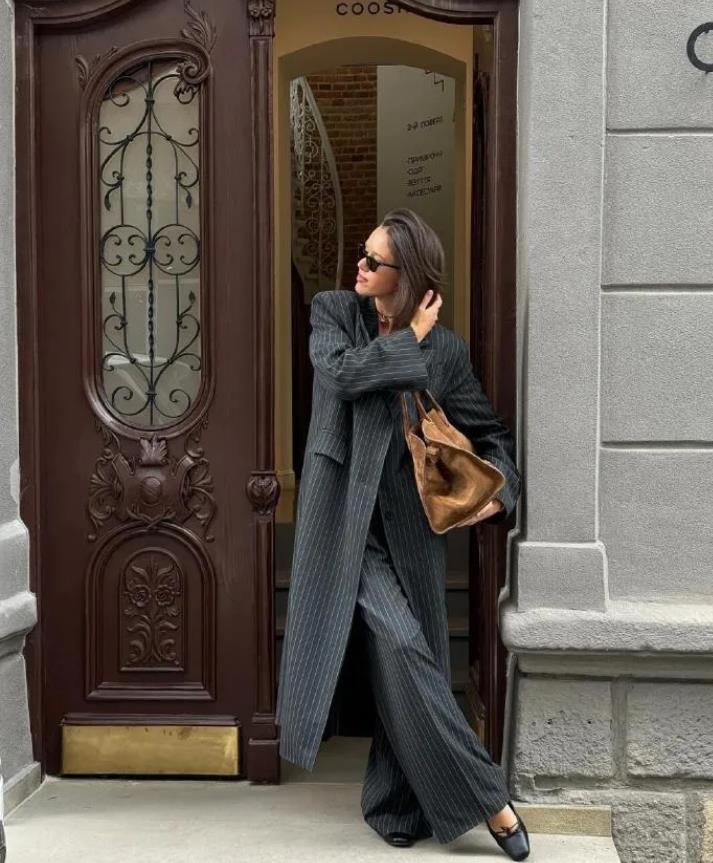 早八人的穿搭最離不開的就是西裝褲了,高級灰色大衣與西裝褲的組合,既融合了復古又不失幹練和氣質,輕鬆就打造出都市女精英的既視感,闊腿西裝褲,對身材包容性也是極佳的,很不失高級大方的穿搭。 ▼