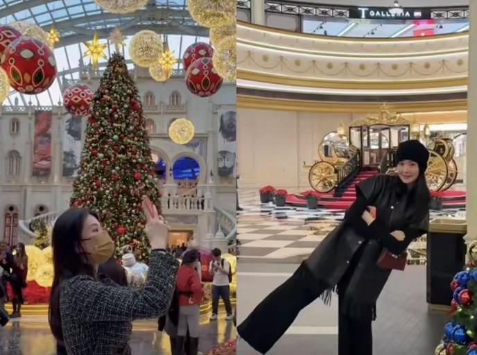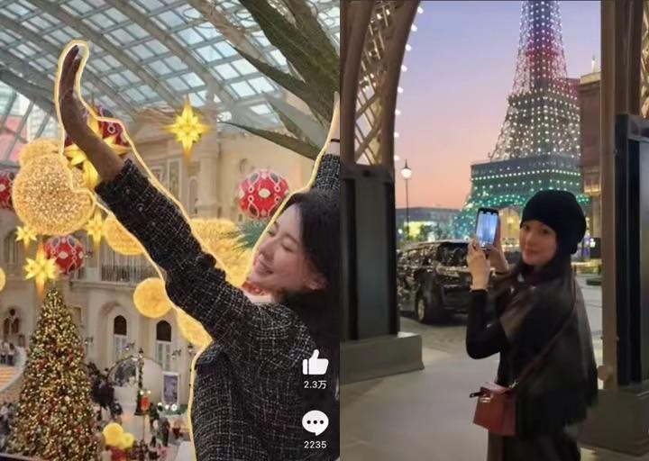 喬欣在聖誕樹下拍美照,而這美好的瞬間、就被他的老公捕捉下來。只有恩愛的夫妻、纔會如此默契吧。