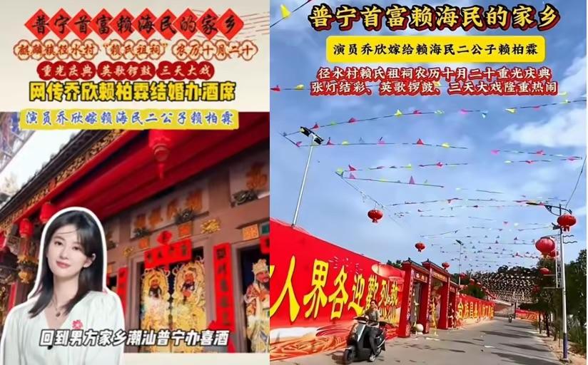 老公是普寧首富賴海民的二公子賴柏霖,婚禮現場的佈置也是非常豪華、且場面壯大。滿是紅色的條幅、以及醒目的彩旗,渲染着幸福的氛圍。