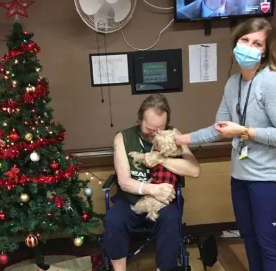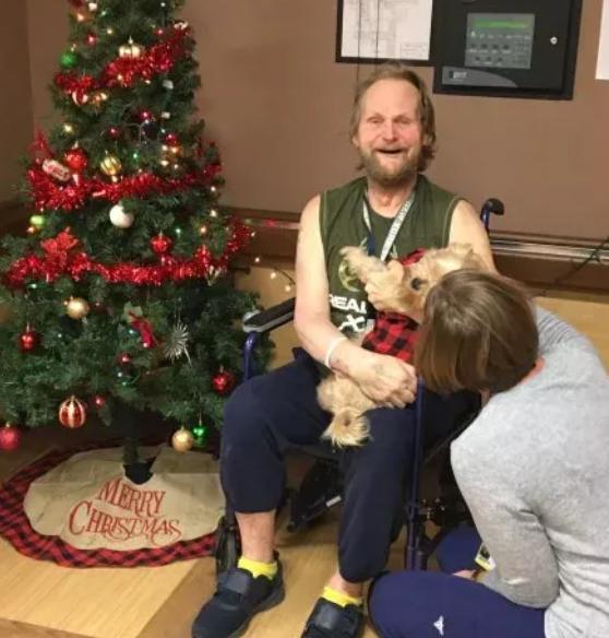 後來,詹妮弗給布瑪穿上了漂亮的聖誕小姨夫,將它帶到了約翰伯利所在的康復醫院,給了約翰伯利一個大大的驚喜。