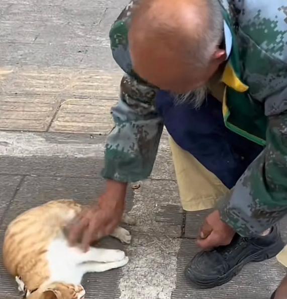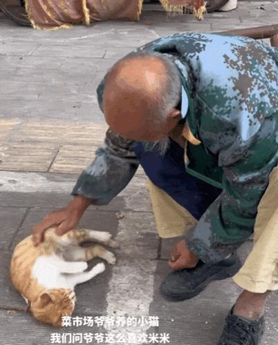看得出來,這位老爺爺是真心愛着這隻小貓,在無人問津的時候,一人一貓歡樂地玩耍。