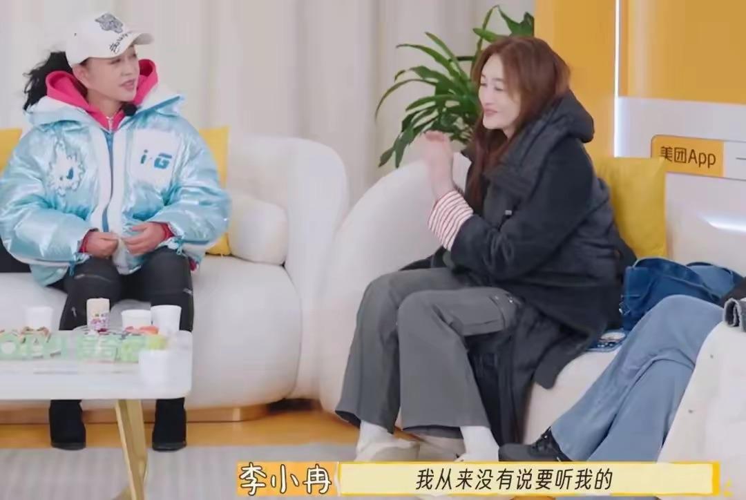 大家都在聽領隊劉曉慶講話,李小冉臉上多少有點不悅。她對於劉曉慶的不滿、已經寫在臉上了,就是不知道是發自內心的、還是劇本表演痕跡。
