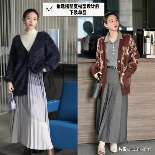 ⑴ 毛衣+寬鬆型下裝搭配,舒適大氣