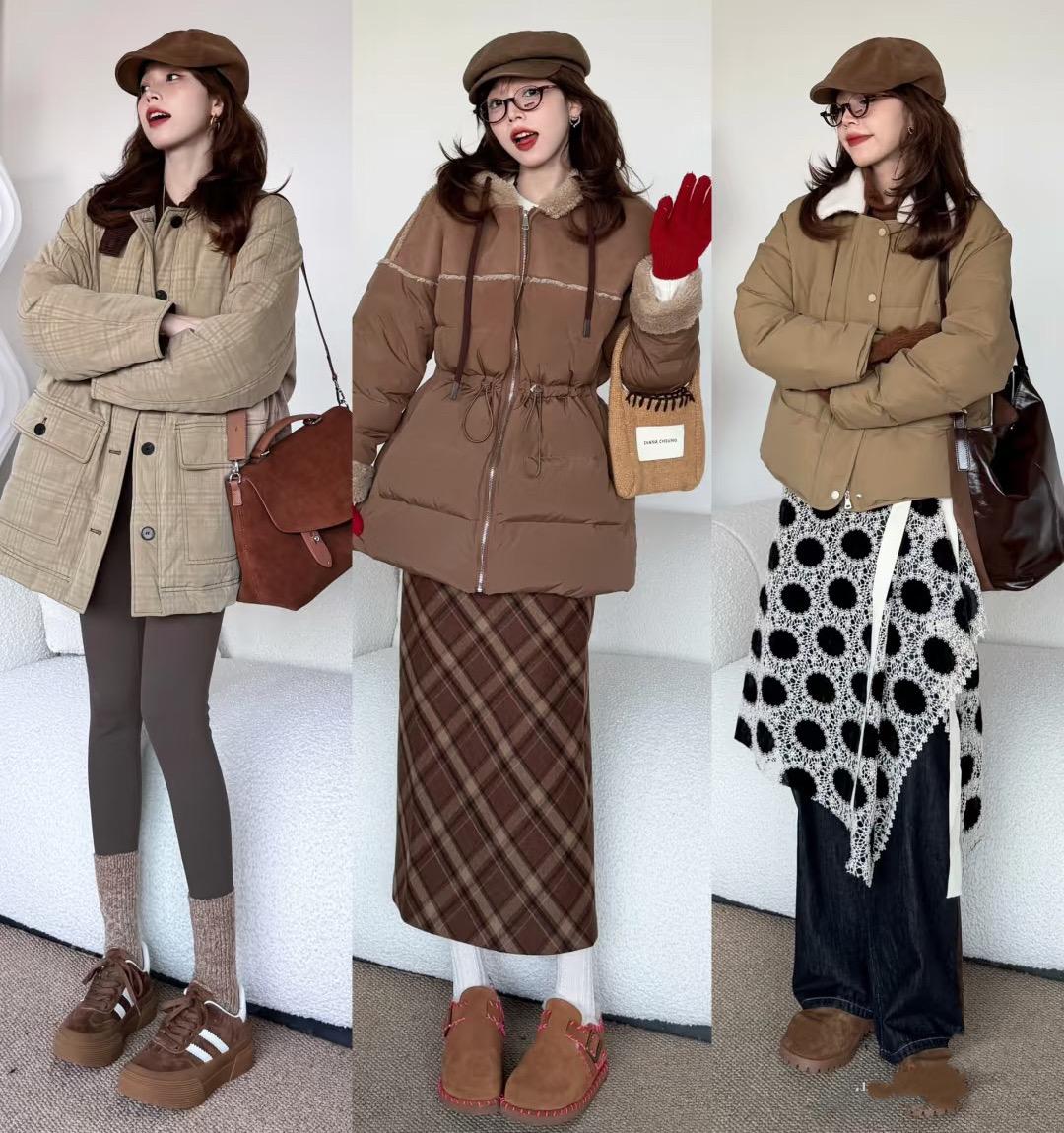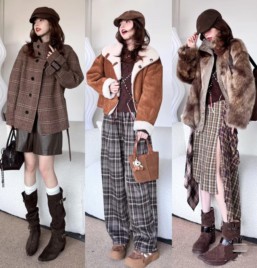棕色系的外套,更加溫暖不挑人,配深色系的半身裙、或者打底褲,都會給人一種舒適時尚之美,顯瘦效果也很明顯。