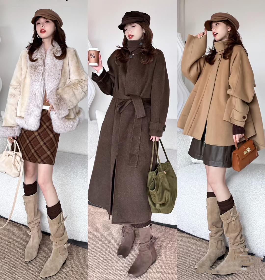 個子不高的女生,毛呢大衣不必選擇冗長的款式。膝蓋附近的長度,穿起來就更加時髦洋氣。配上一雙小腿襪、或者中筒襪,就特別洋氣減齡。
