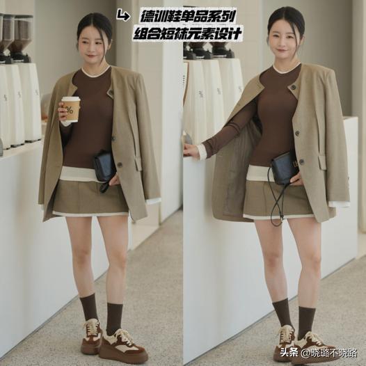 ⑴ 德訓鞋搭配短裙,露腿穿搭更好看