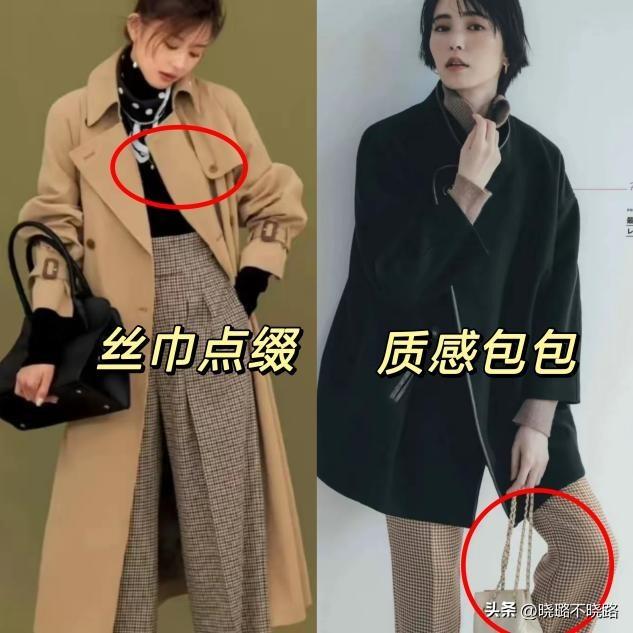 大衣的款式越基礎越簡約,大家應該在配飾上做文章。日本女人在穿純色的直筒大衣時,往往會搭配一個精緻的包包,讓造型瞬間時尚洋氣了許多。也可以疊加一條帶有波點圖案的絲巾,使得整體造型更加有格調。但是儘量選擇小方巾,又寬又大的樣式反而拖沓累贅。
