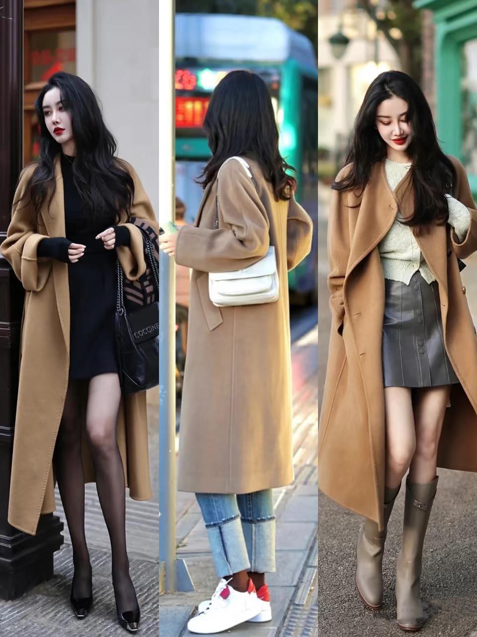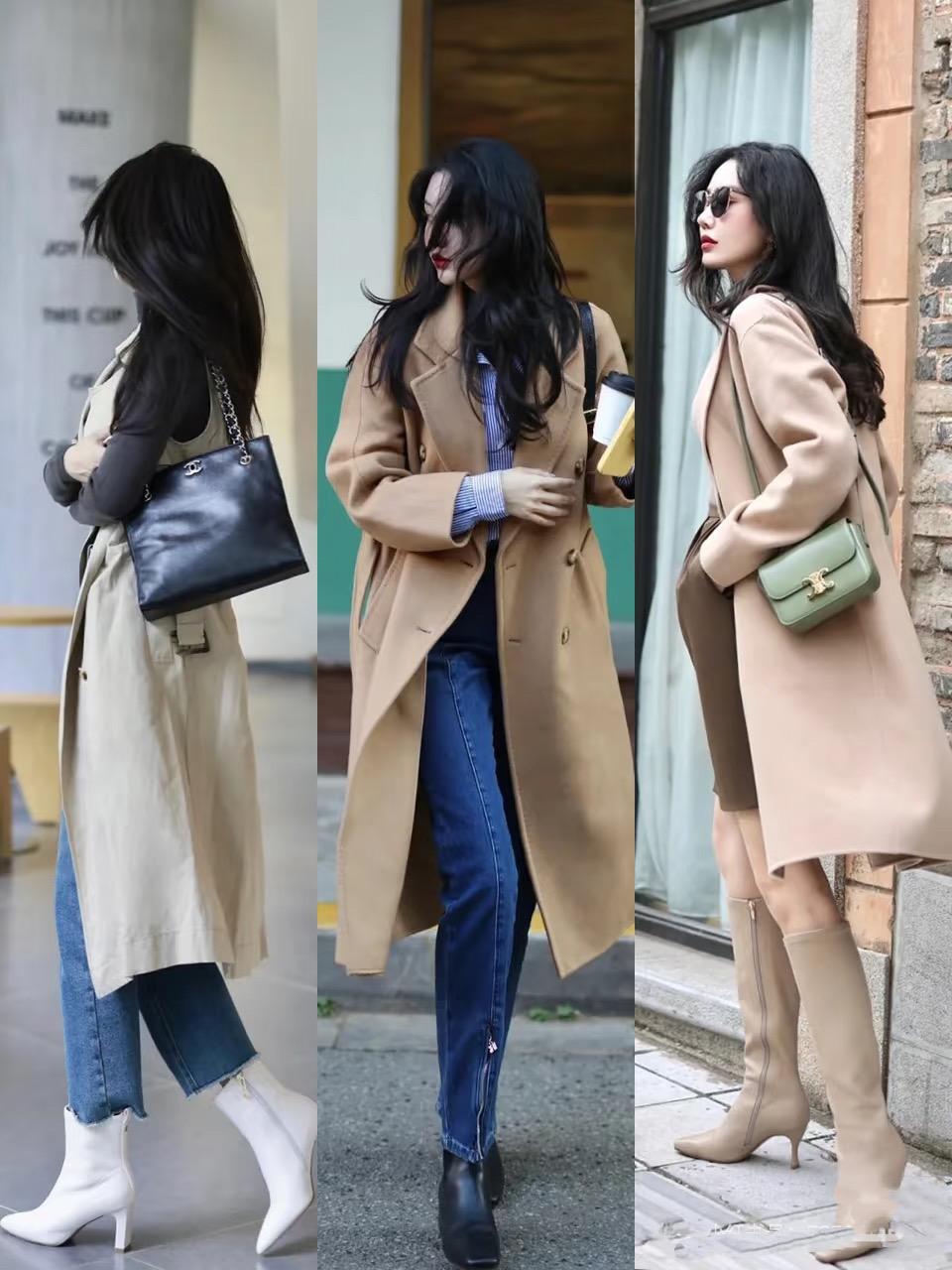 一組很時髦,又相對洋氣的穿搭,誰能不喜歡呢?像這種翻領的大衣,到大腿的長度好高級,配上高腰的牛仔褲,顯得腰細腿長。