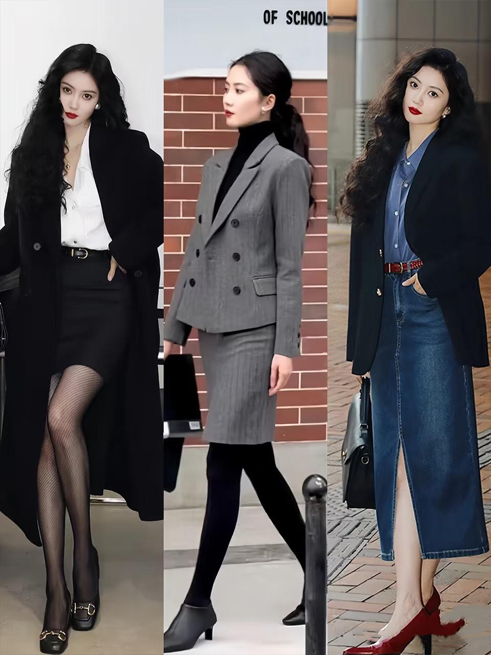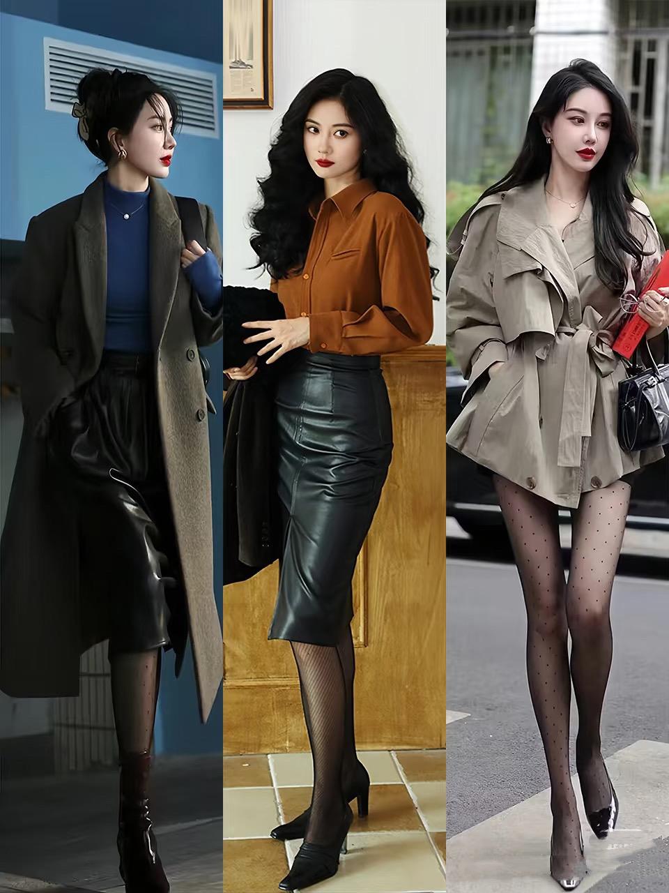 白襯衫作爲內搭,可以配高腰的包臀裙,一雙黑絲襪又辣又美。黑絲襪、包臀裙、白襯衫,作爲內搭太驚豔了,配長大衣一點不俗氣。