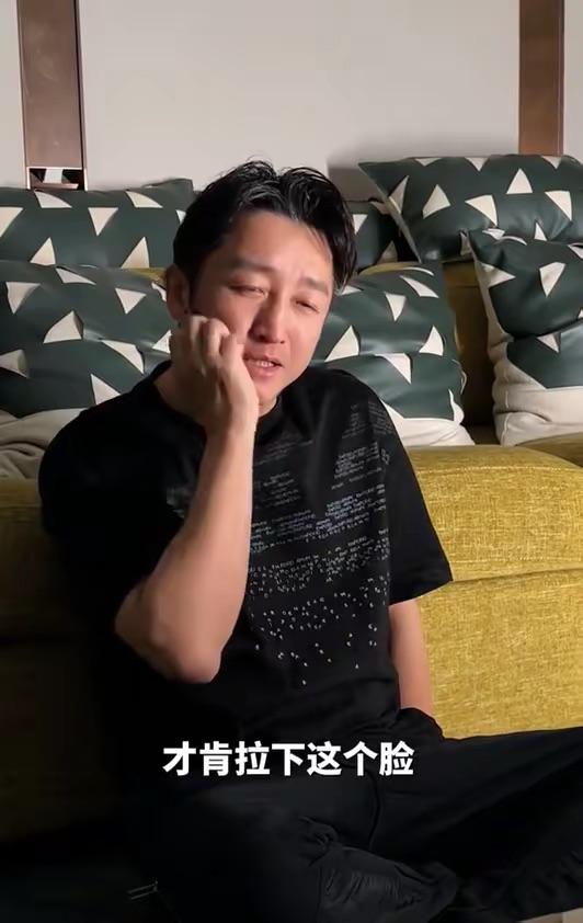 看鄒市明現在的狀態,真的有點萎靡。他穿着寬鬆T恤、黑色褲子,盤腿坐在那裏,看似是一種很自在穿狀態,卻也暴露了內心的無助。