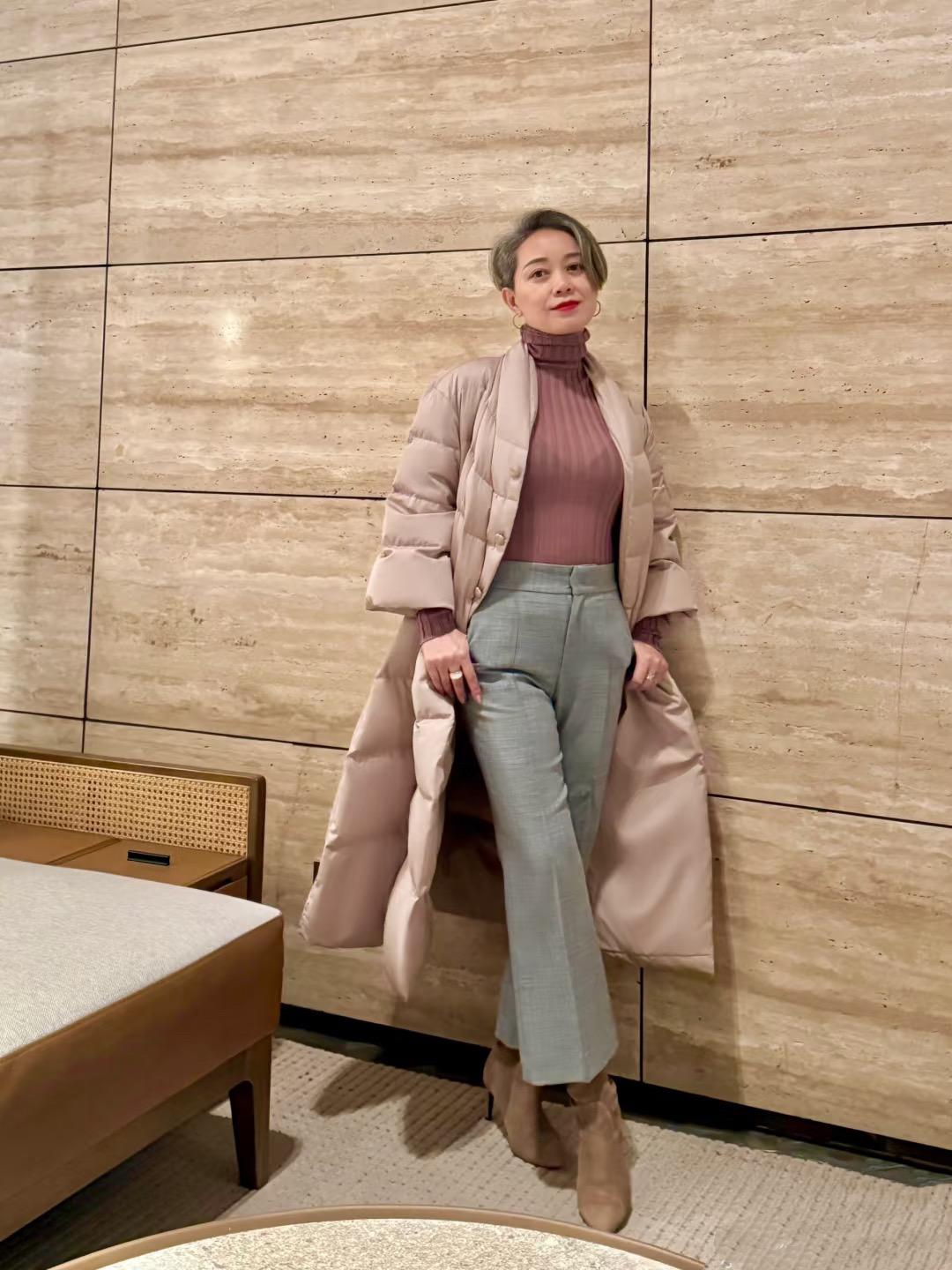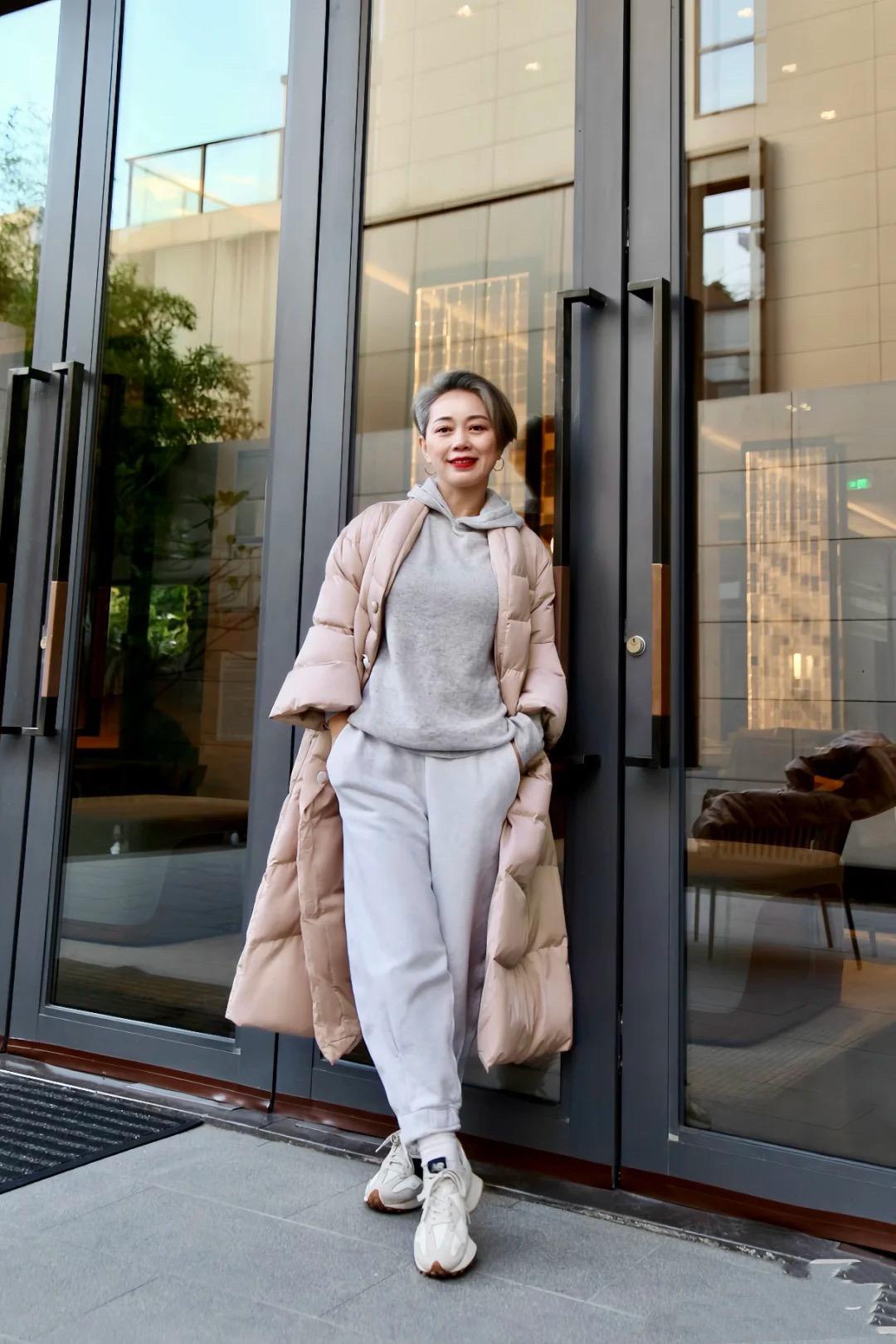 50+的年紀,更加怕冷、畏寒,所以冬天一定不能再“美麗凍人”了。保暖,永遠都是首要的。看這位阿姨,選了一件粉色棉被款羽絨服,實在太明智了。