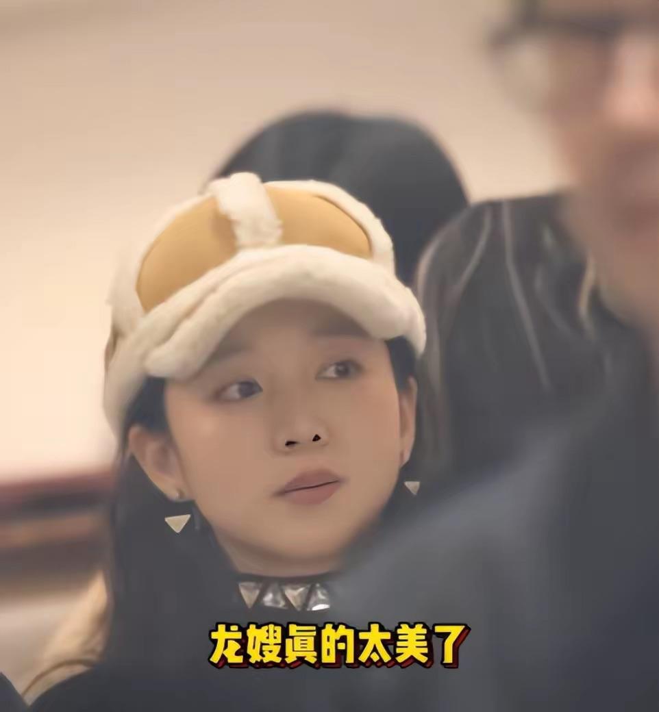 不過龍嫂是真的美,即便帶這樣一頂帽子、依然是無可挑剔的神顏。她五官精緻小巧、臉上帶着些許肉感,格外富態。