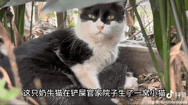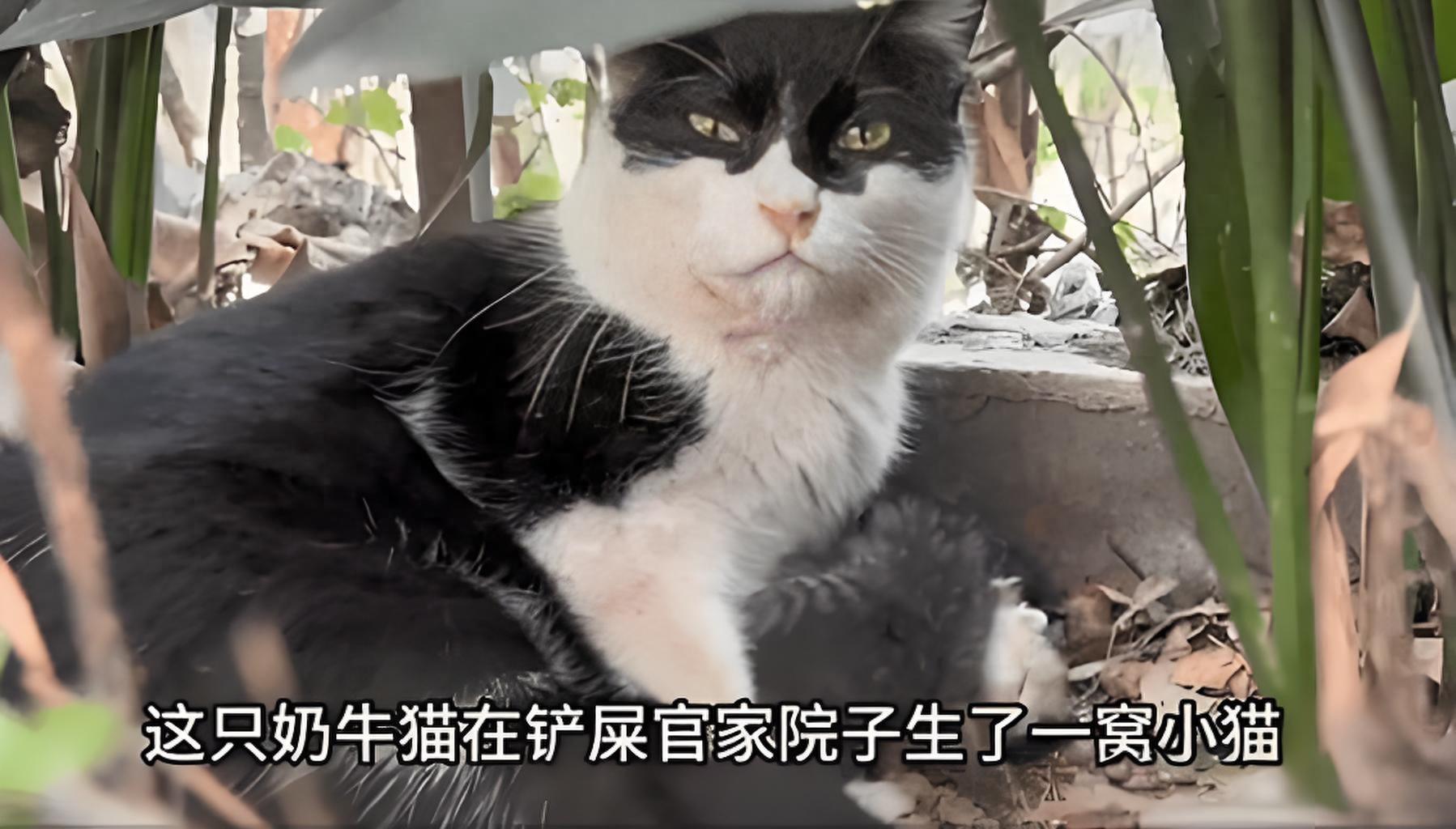 接着,奶牛貓在院子裏生下一窩貓崽子。