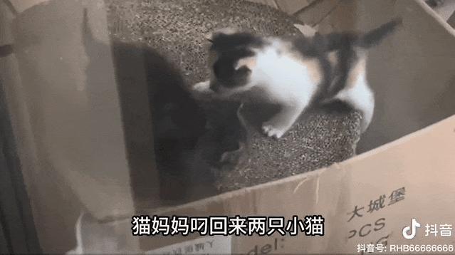 正當鏟屎官心灰意冷之際,貓媽媽又叼着兩隻小奶貓回來了。