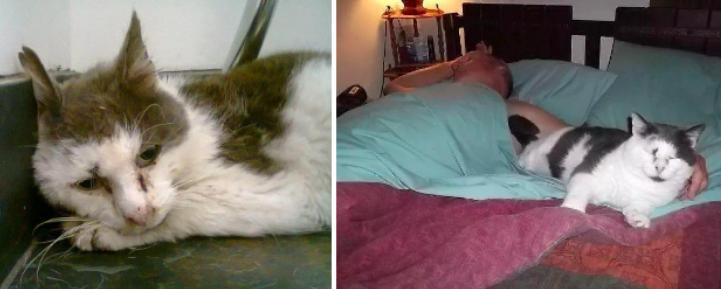 還有這隻久病纏身的流浪貓Teddy,它們都曾面臨過安樂死的命運,最終在死亡線上被拉了回來。死裏逃生,往後的日子一定福氣滿滿。