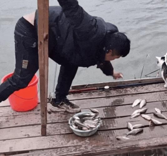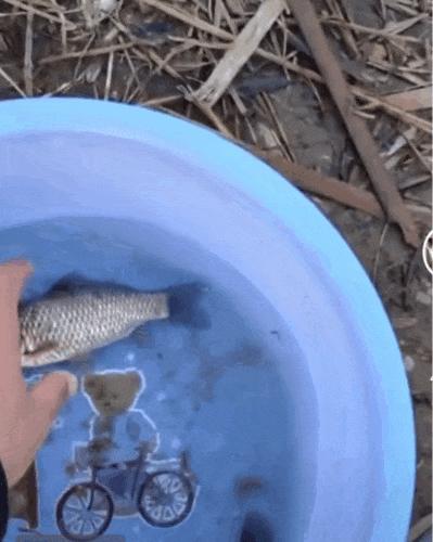 當天,釣魚佬正興致勃勃地野釣,突然,從草叢中跑出來一隻流浪貓。釣魚佬見到流浪貓風韻猶存的模樣,不禁“獸(shan)心大發”,從只有兩條魚的水盆裏面拿出一條扔給喵咪。
