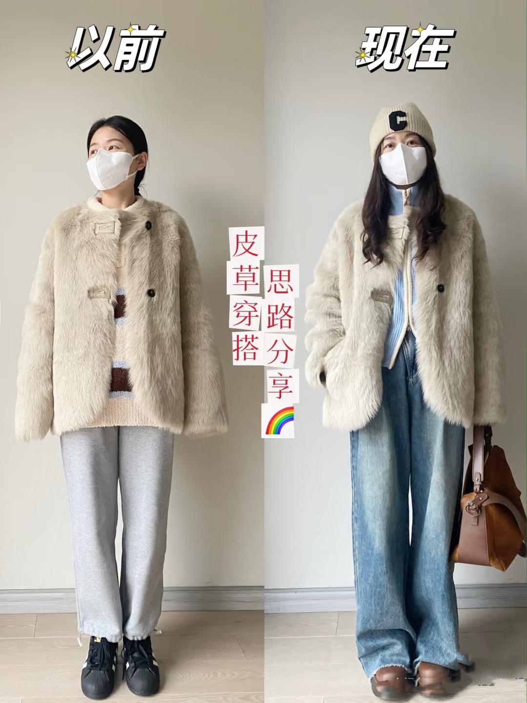 寬鬆貴氣的皮草外套,大概是十多年前流行的款式了,除了過年似乎沒有場合可以穿着了。其實這種寬鬆皮草外套,認真搭配一些也很洋氣。