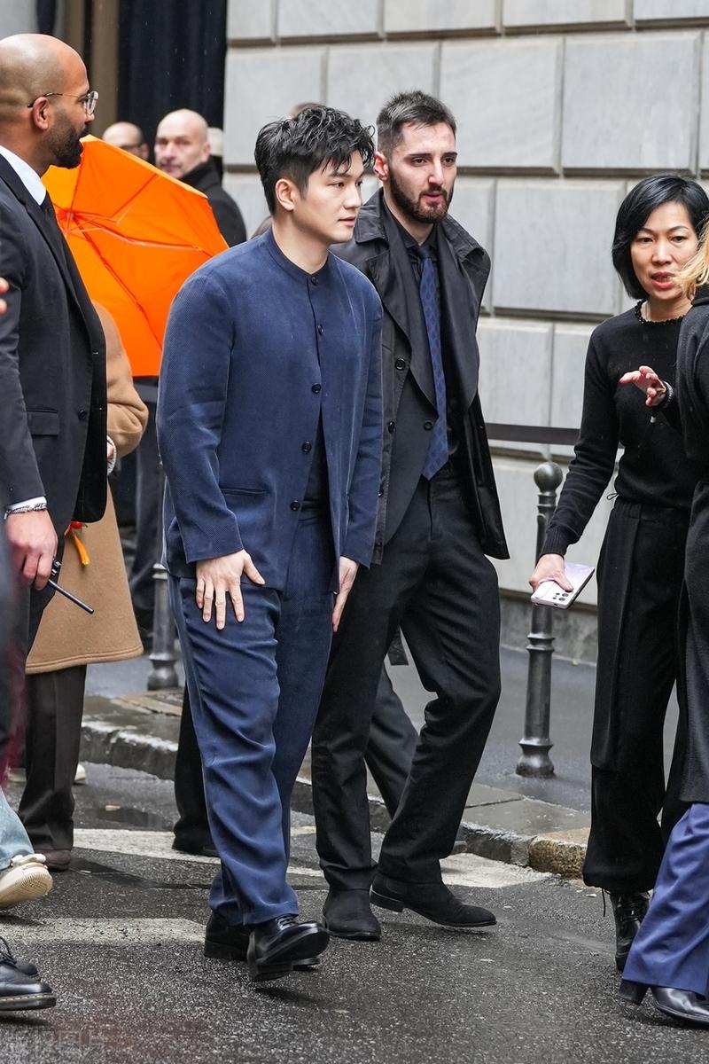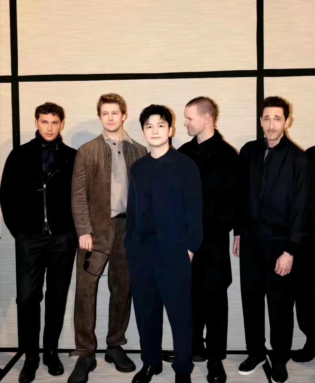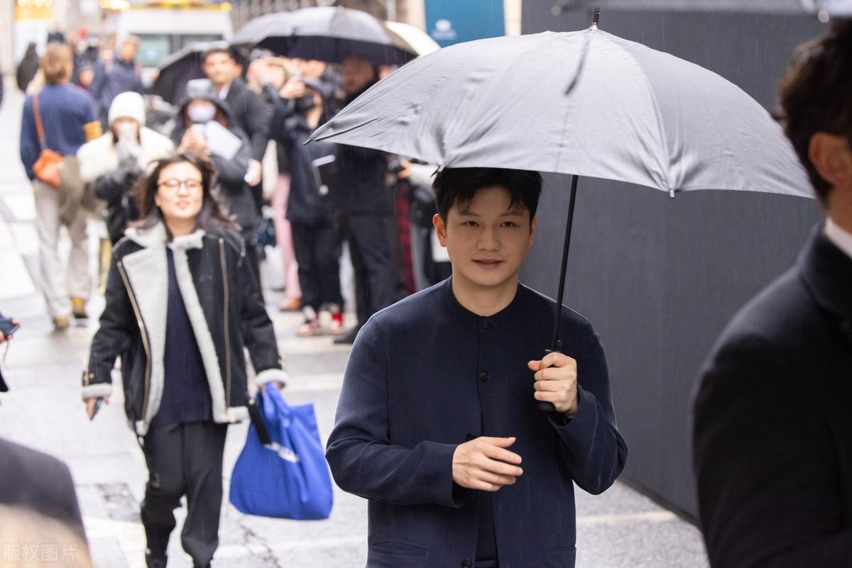 雖然當天他的穿搭不是很醒目,藏藍色的套裝、黑色皮鞋,屬於比較規矩的打扮。但是他可以憑藉自己獨特的氣質,成爲人羣的焦點。