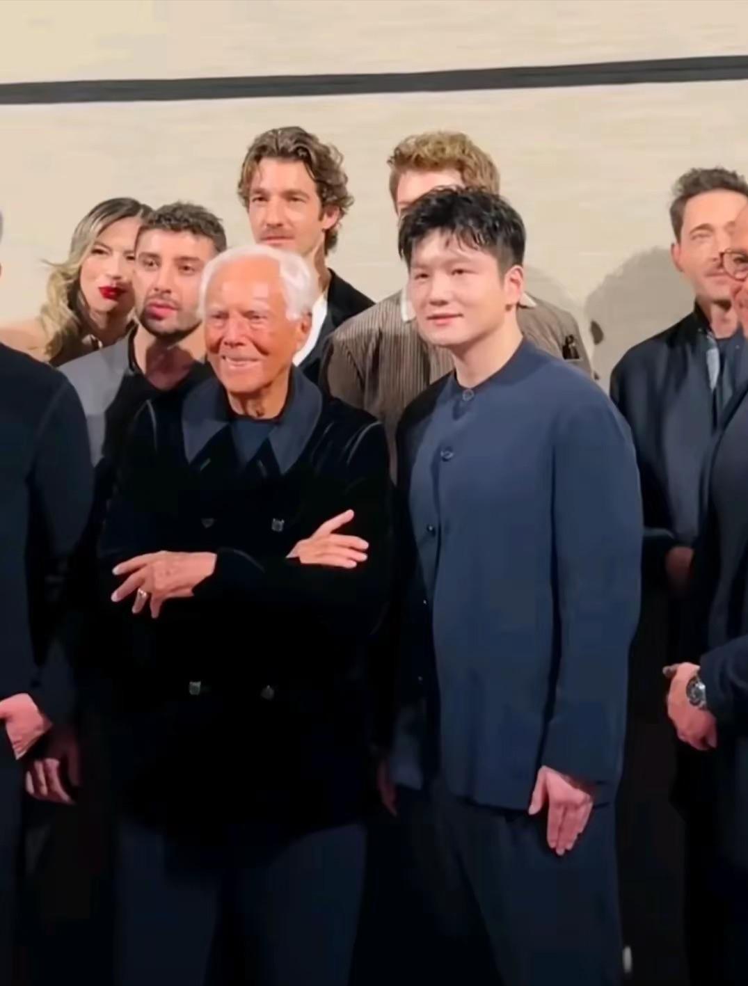 就連阿瑪尼老爺子,都特別喜歡這個帥氣的小夥子。合影的時候,樊振東的緊緊挨着阿瑪尼老爺子,這站位已經很醒目了。