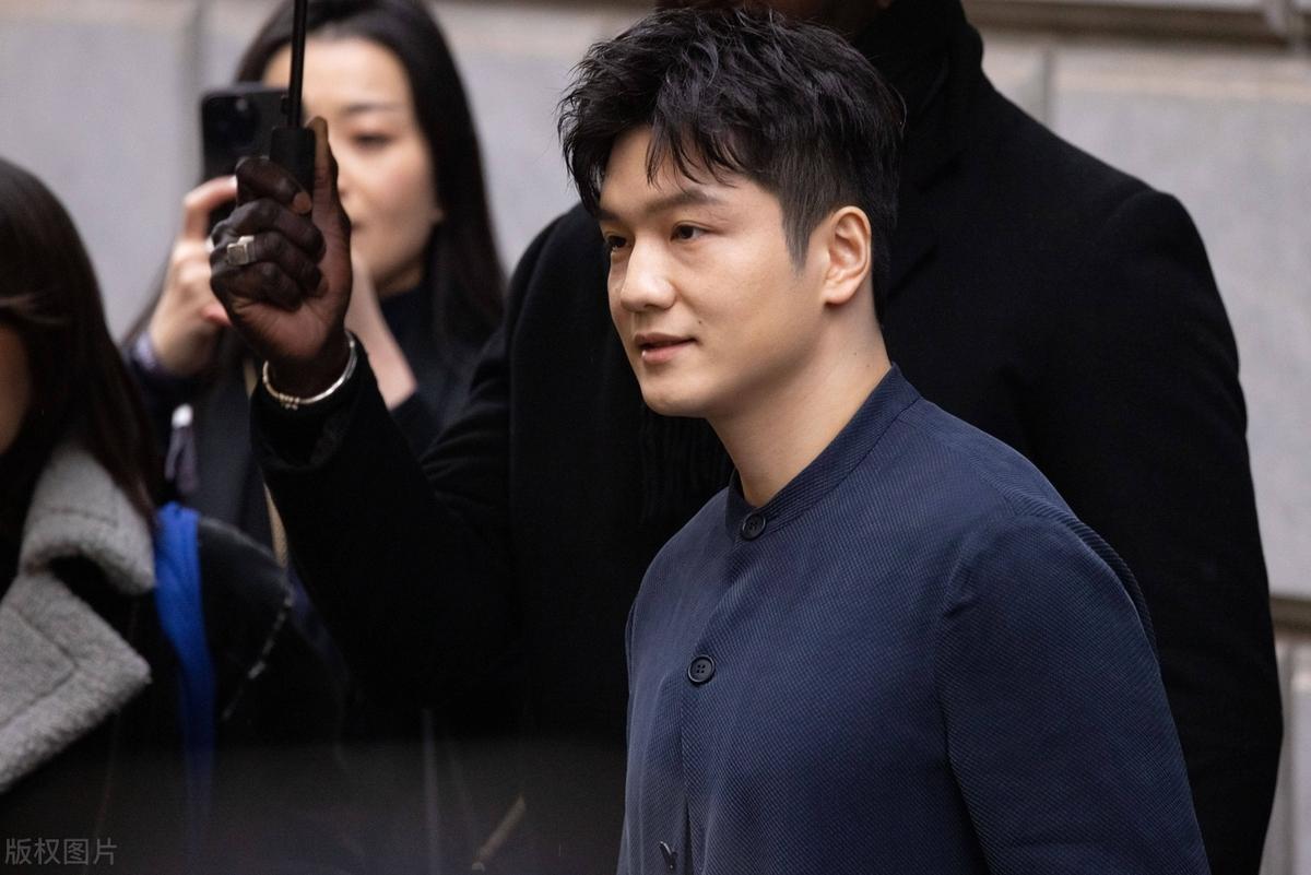 樊振東振東好帥啊,他穿一身藏藍色套裝,幹練有範、眉眼深邃、五官立體,彷彿一出場就帶着冷冽感。