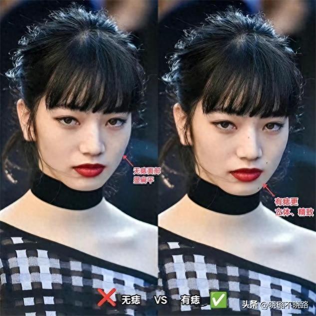 臉頰有痣並不是缺點和瑕疵,反而能夠突出高級感。因爲有了痣的加入後,可以更好的優化臉部的比例,讓三庭五眼更加平衡、大氣,看起來更加端莊大氣一些,尤其對於方臉和菱形臉來說,有了痣的點綴後,可以讓你的面中更窄一些,視覺上看起來更加精緻高級。