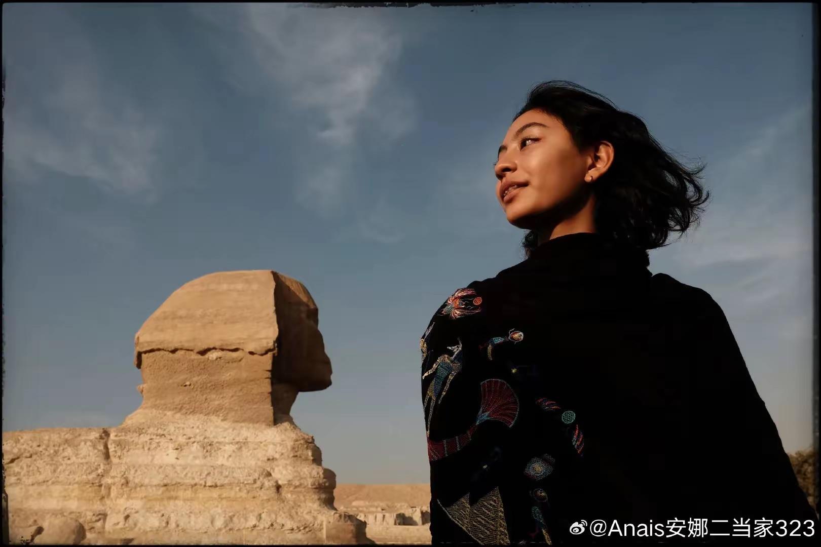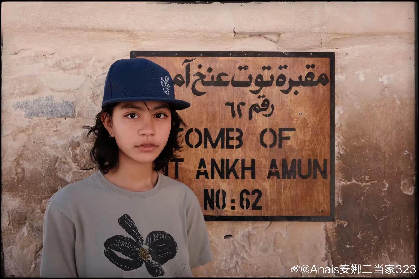 金字塔下的霓娜,拍下了絕美的側顏照。13歲的霓娜,可能是因爲長相太高級了吧,有一種特別成熟的感覺。