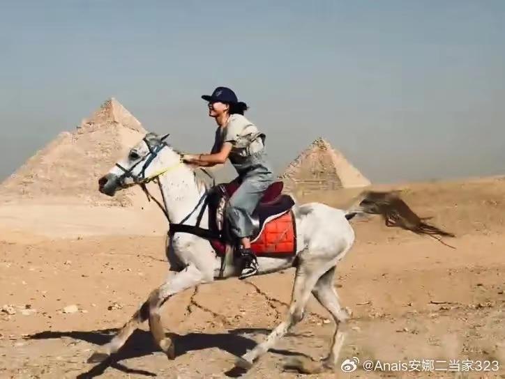 喜歡騎馬的霓娜,在沙漠上策馬奔騰,她穿着揹帶褲在馬背上自由的奔騰,這畫面真的太颯了。