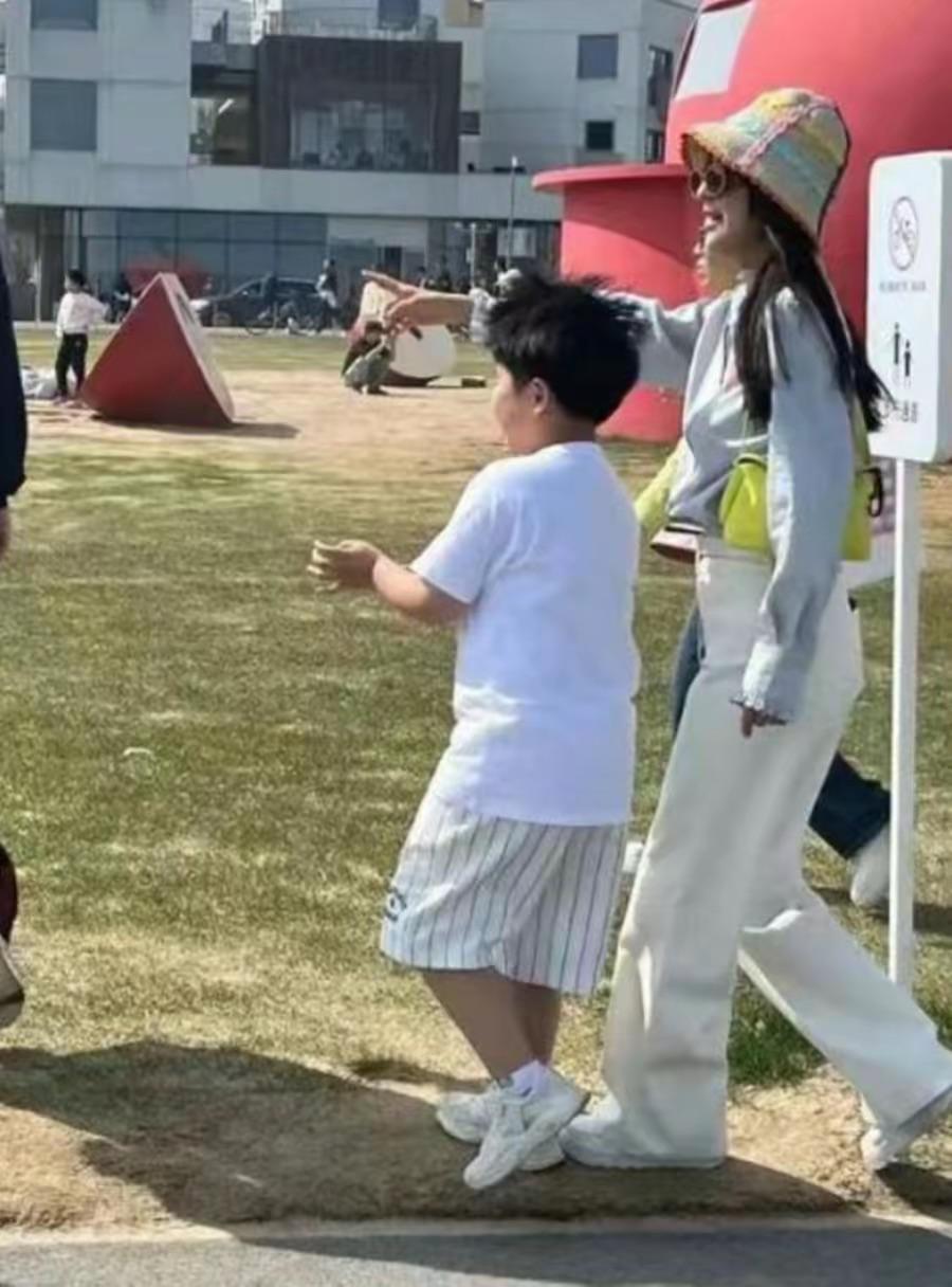 以前出現在大衆視野裏的朵朵,還是一個胖乎乎的小男孩。這次露面,看起來清瘦了很多,越來越帥氣了。