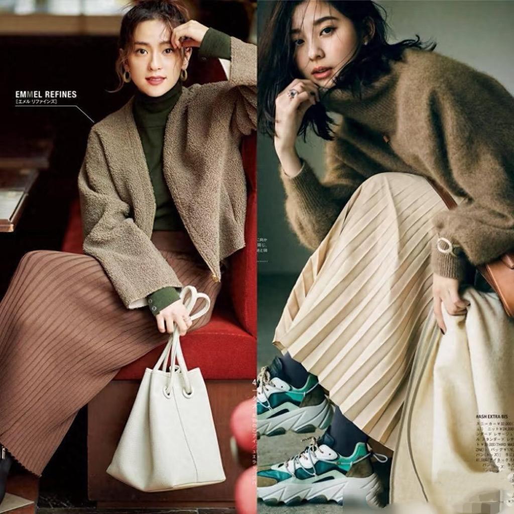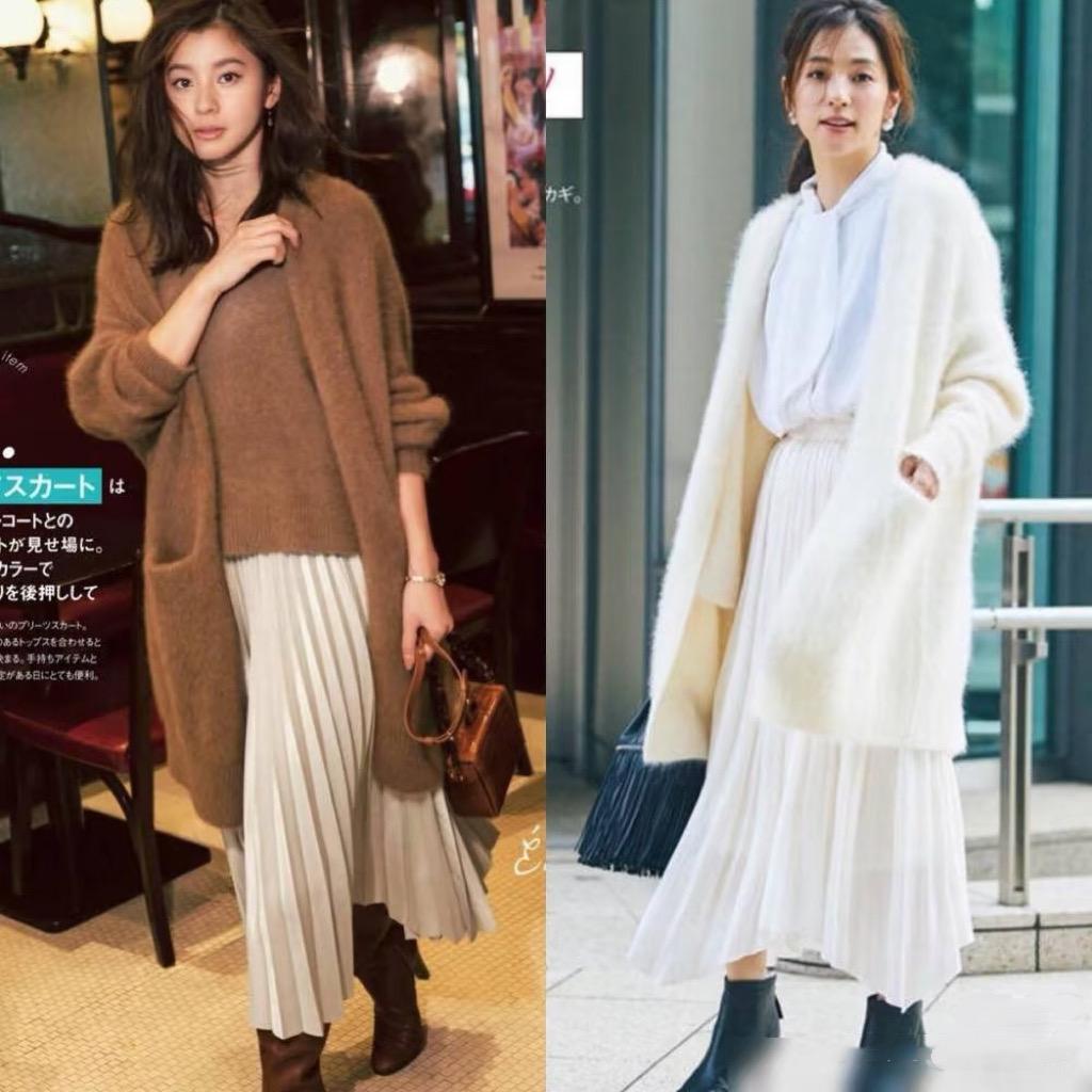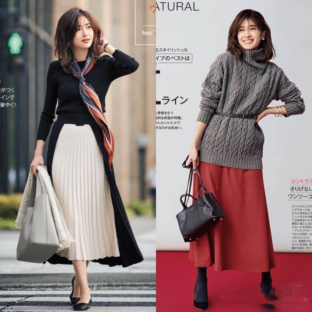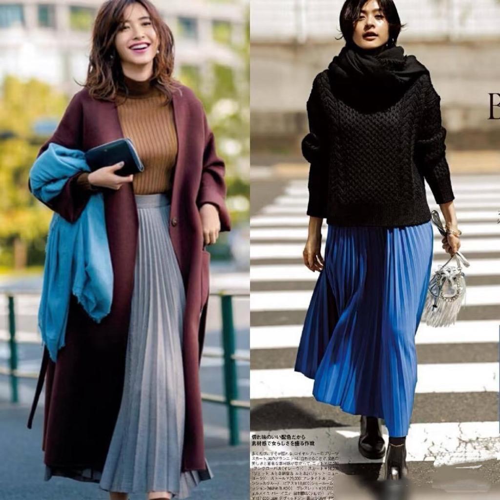 這種風琴百褶半身裙,對於身材的包容性更強。我們可以用修身的針織衫配風琴百褶的半身裙,優雅浪漫還顯身材,配一雙短靴精緻還洋氣。