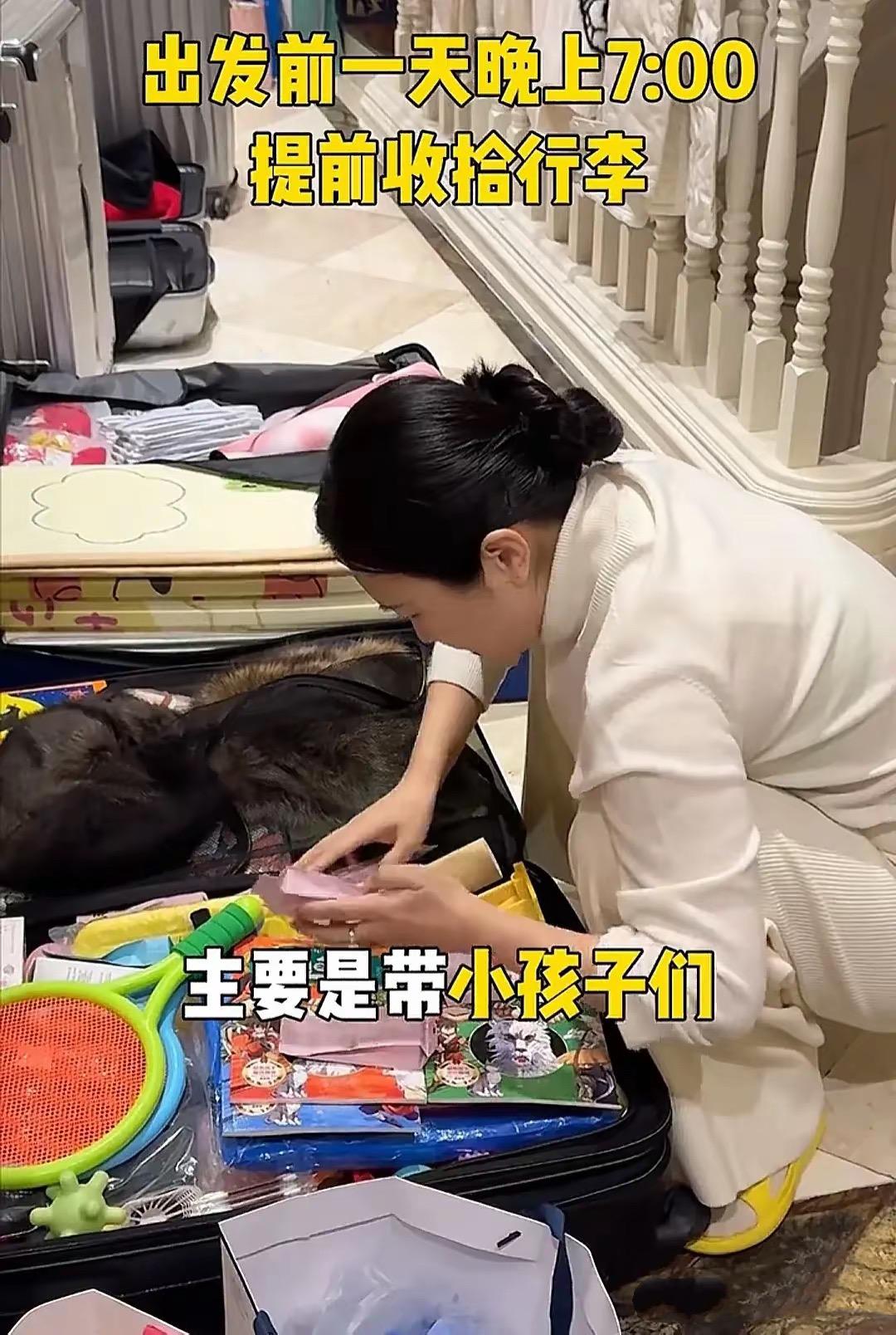 杜星霖整理了整整12個行李箱,也不知道她收拾行李收拾到幾點。三個娃的媽媽,出一趟遠門真是太難了。看着滿滿當當的行李箱,就覺得累。